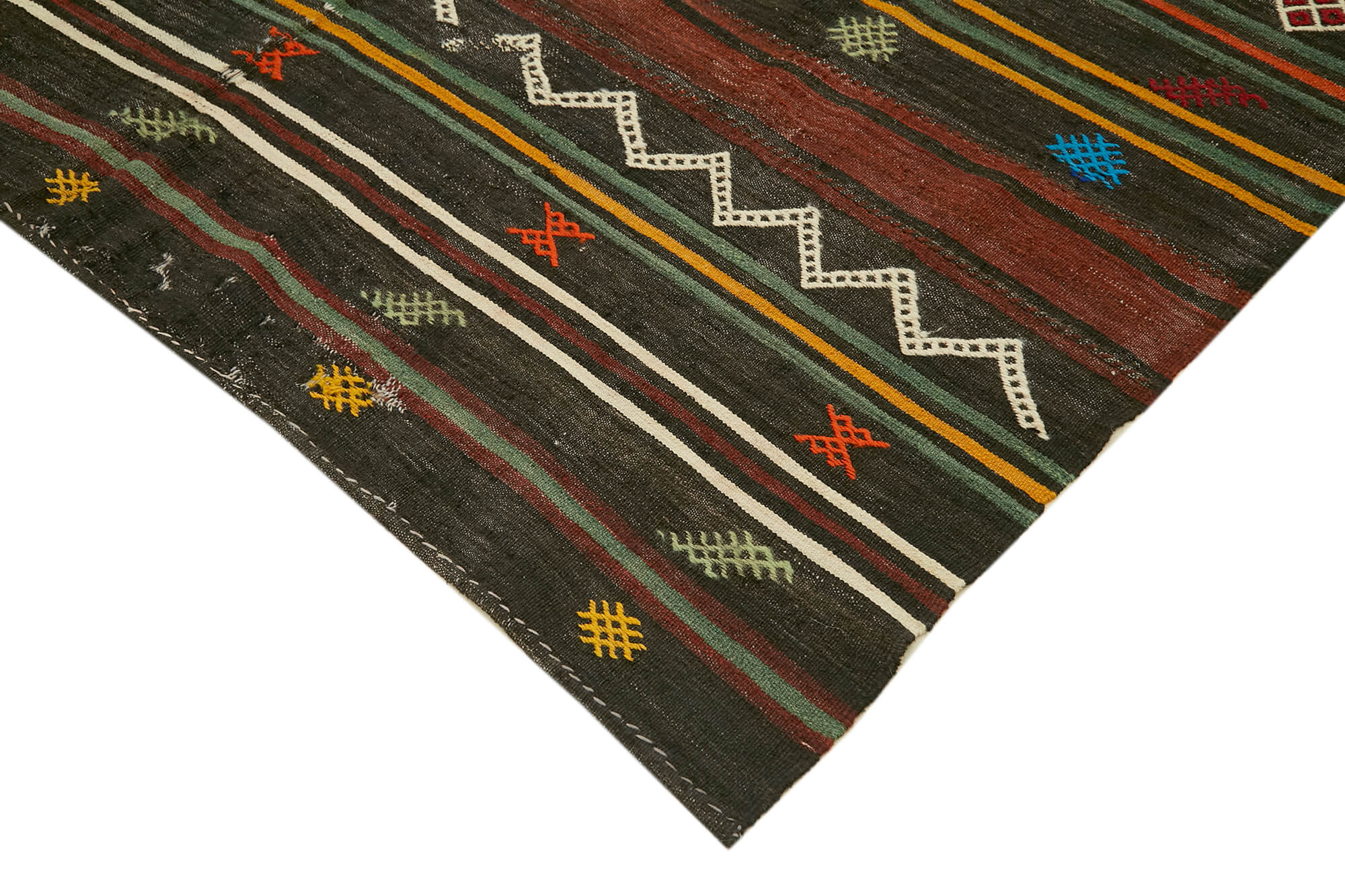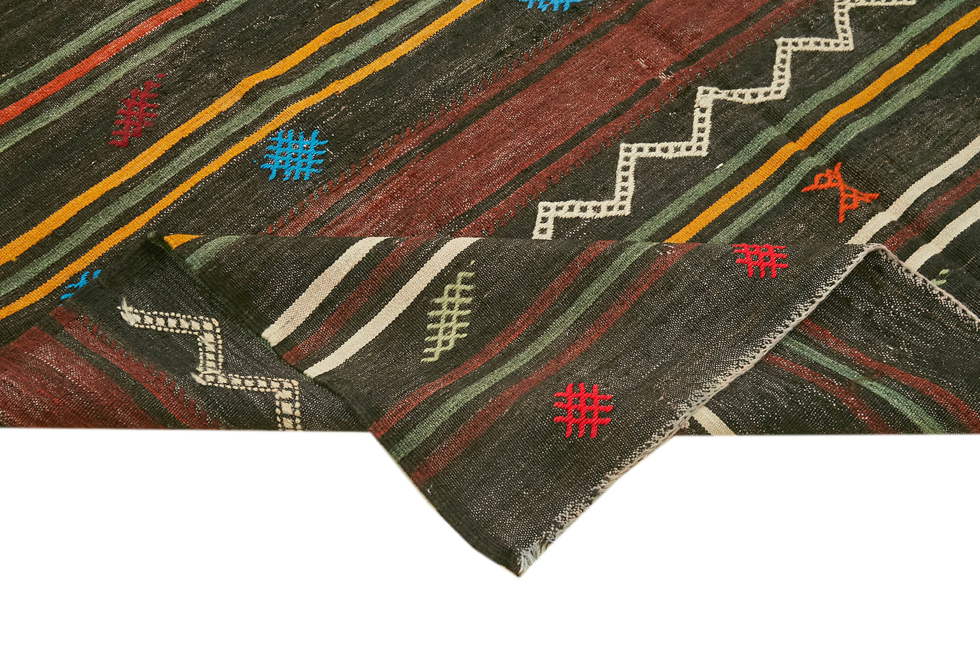 Striped Kilim Black Striped Goat Hair Handmade Rug 6'7'' x 11'3''