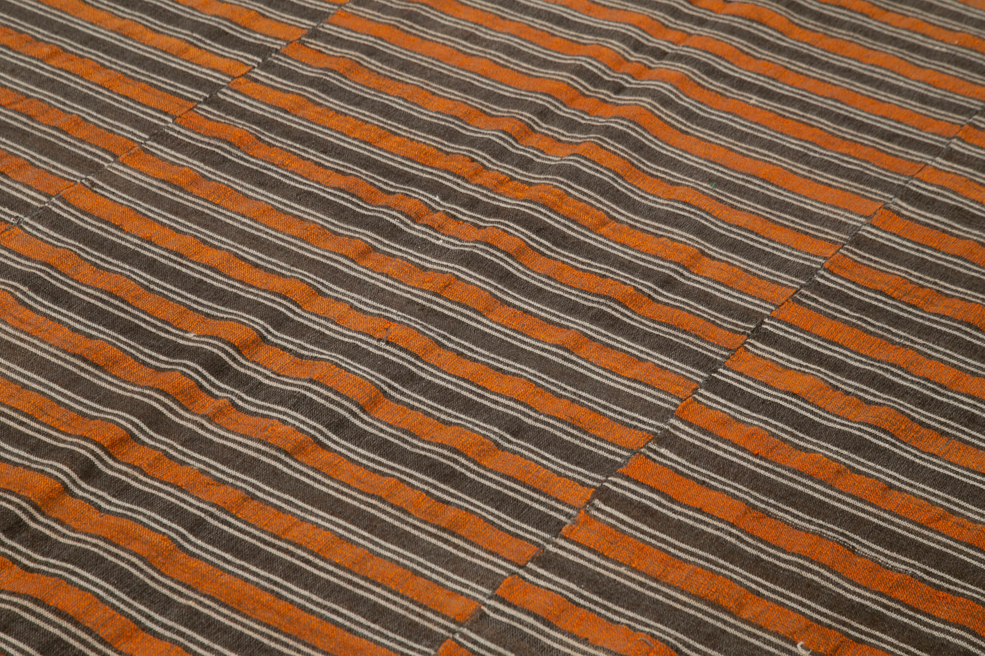 Striped Kilim Brown Striped Cotton Wool Handmade Area Rug 6'8'' x 10'0''