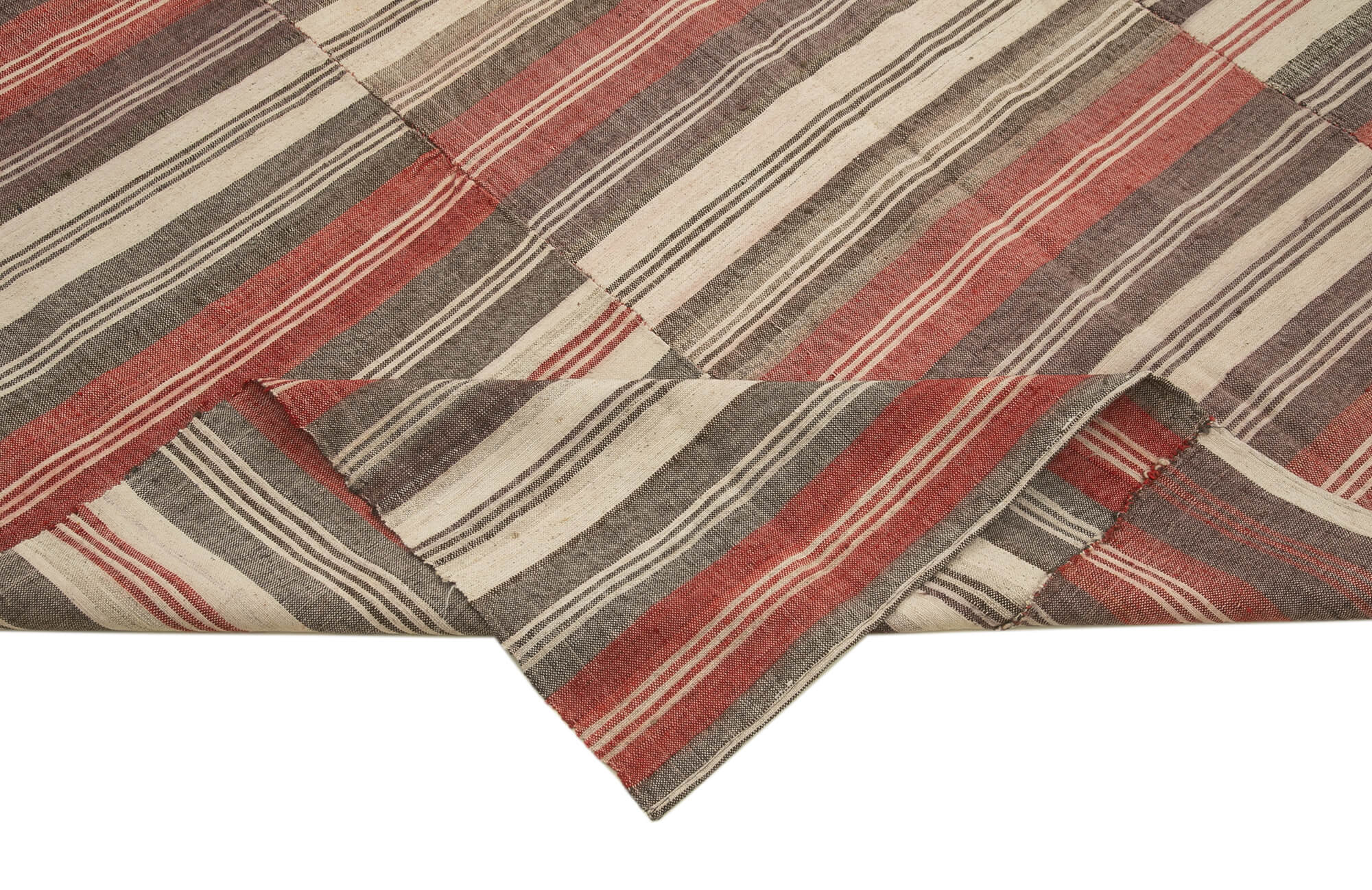 Striped Kilim Brown Striped Cotton Wool Handmade Area Rug 6'8'' x 10'4''