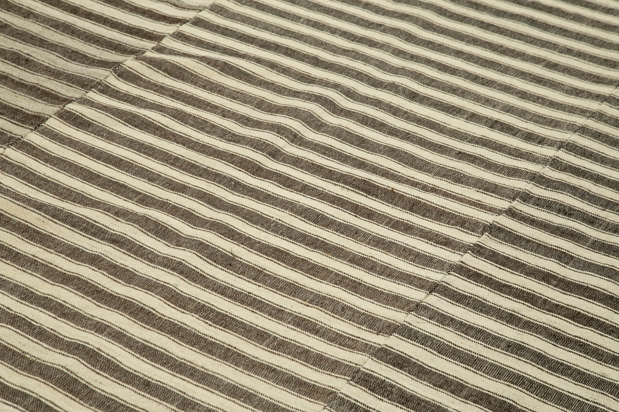 Striped Kilim Brown Striped Cotton Wool Handmade Area Rug 6'8'' x 10'2''
