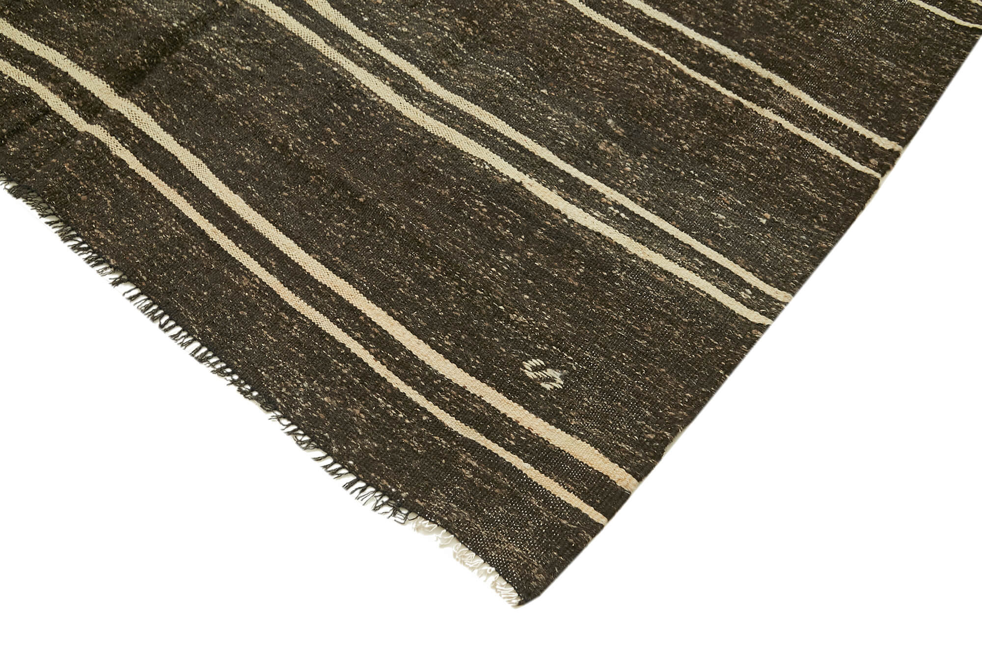 Striped Kilim Brown Striped Goat Hair Handmade Rug 6'1'' x 11'7''