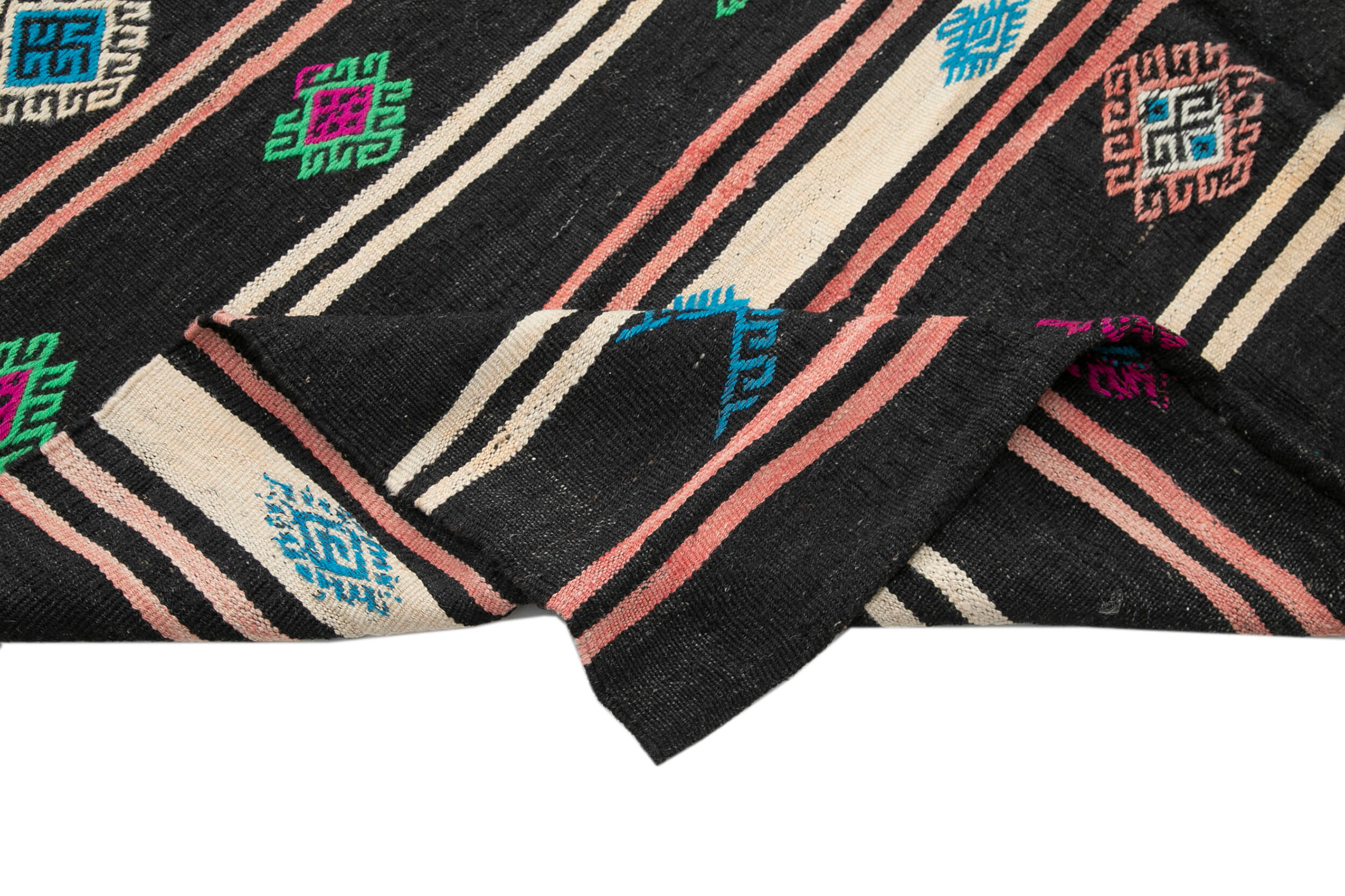Striped Kilim Brown Striped Goat Hair Handmade Rug 7'10'' x 11'9''