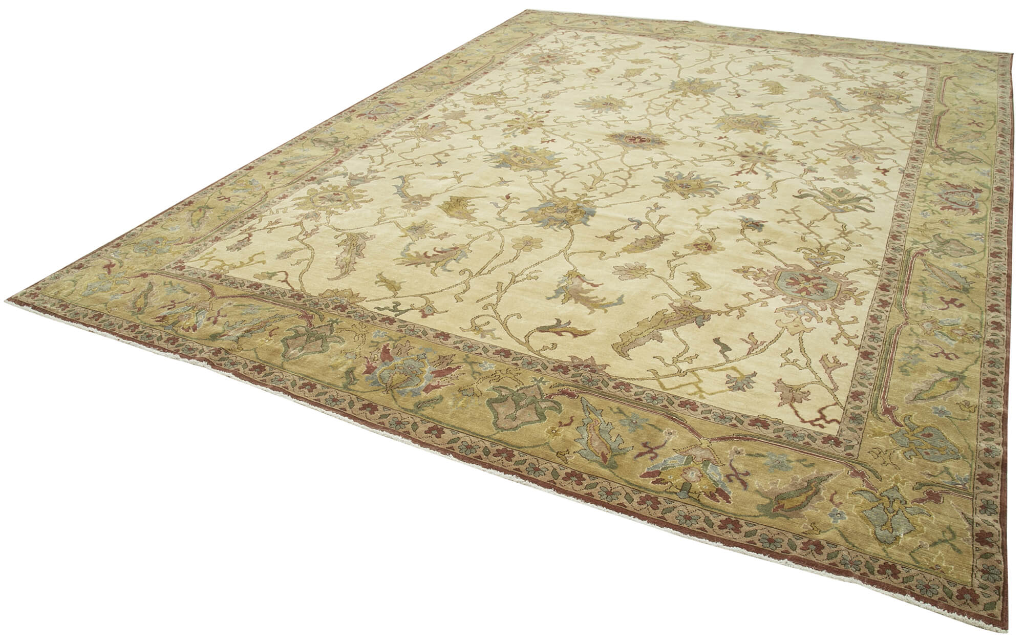 Handmade Area Rug - Tebriz Beige Classic Cotton Wool Vintage Carpet 9'10'' x 13'1''