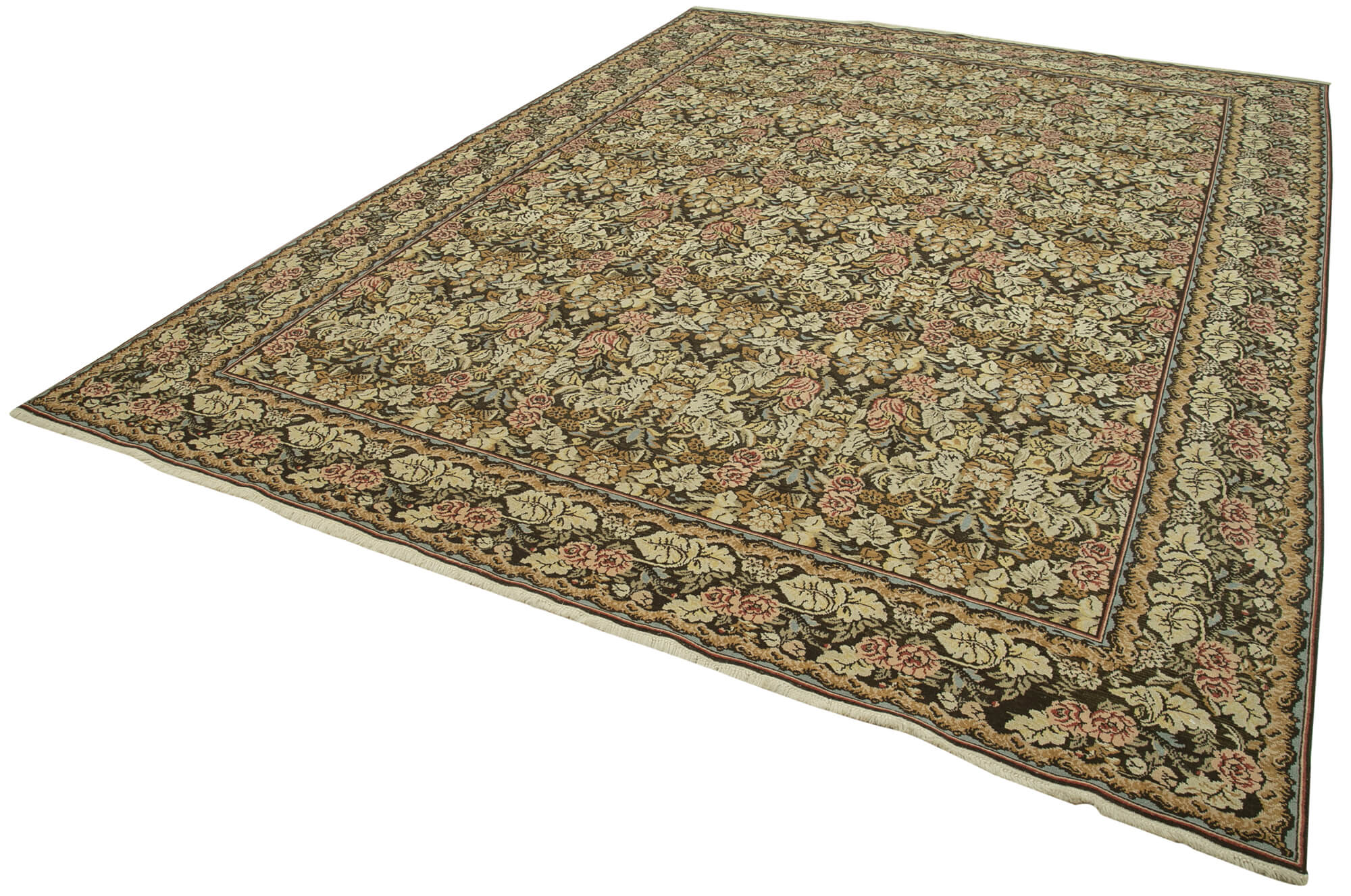 Tebriz Black Classic Cotton Wool Handmade Area Rug 9'0'' x 12'3''