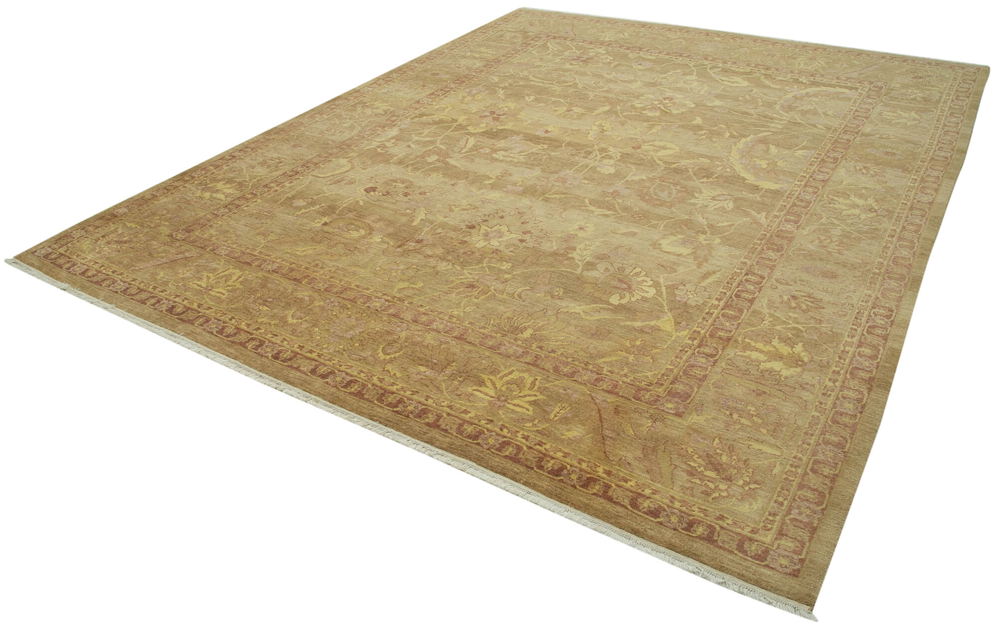 Handmade Area Rug - Tebriz Classic Brown Cotton Wool Rug 9'1'' x 11'10''