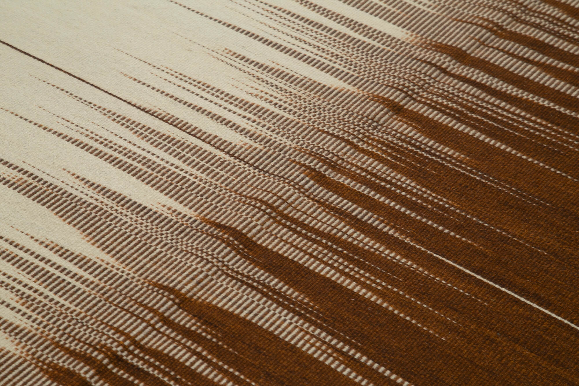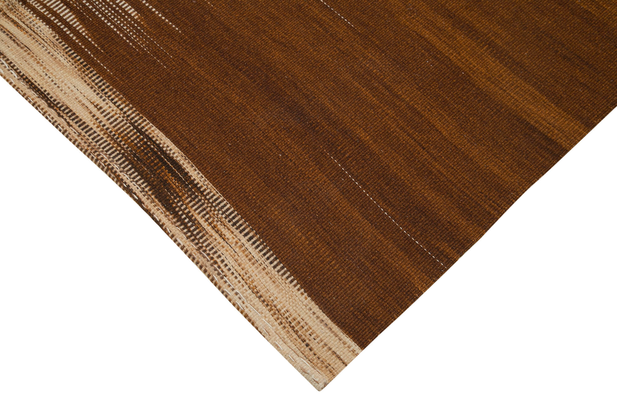 Degrade Kilim Brown Striped Cotton Wool Handmade Area Rug 5'11'' x 8'2''