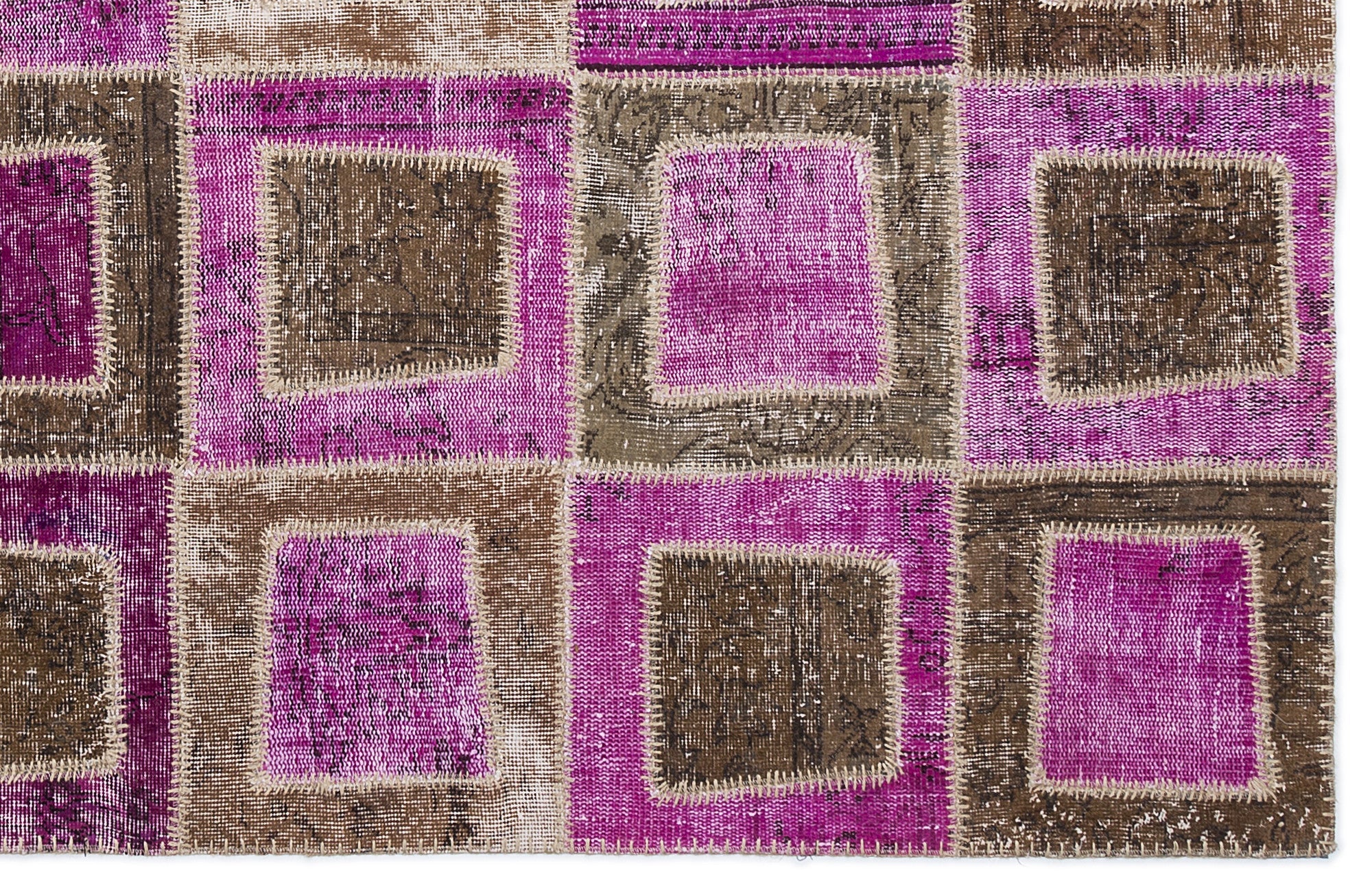 Iskece 2036 Purple Patchwork Wool Handmade Area Rug 5'3" x 7'7"
