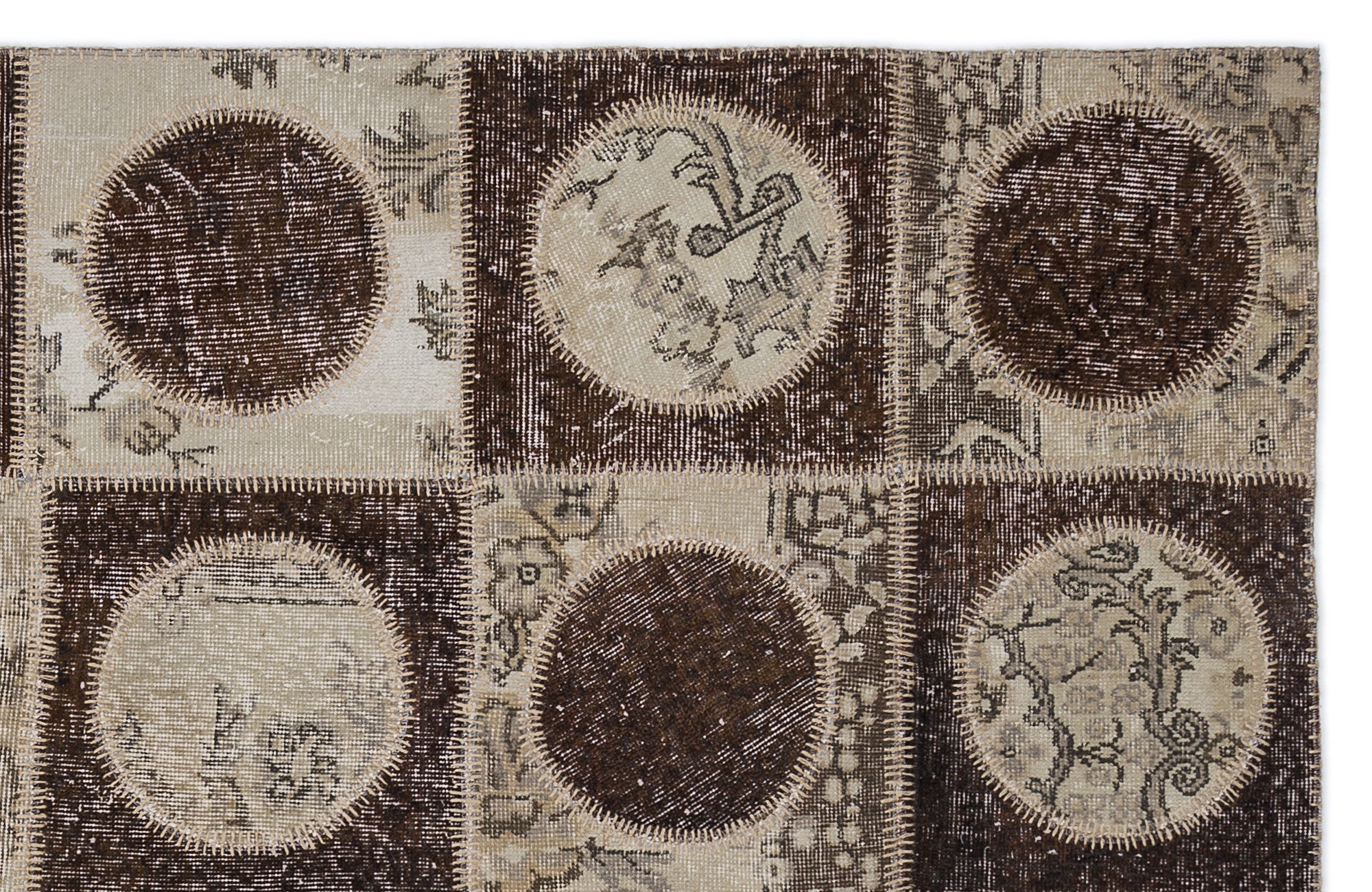 Iskece 2092 Brown Patchwork Wool Handmade Area Rug 5'3" x 7'7"