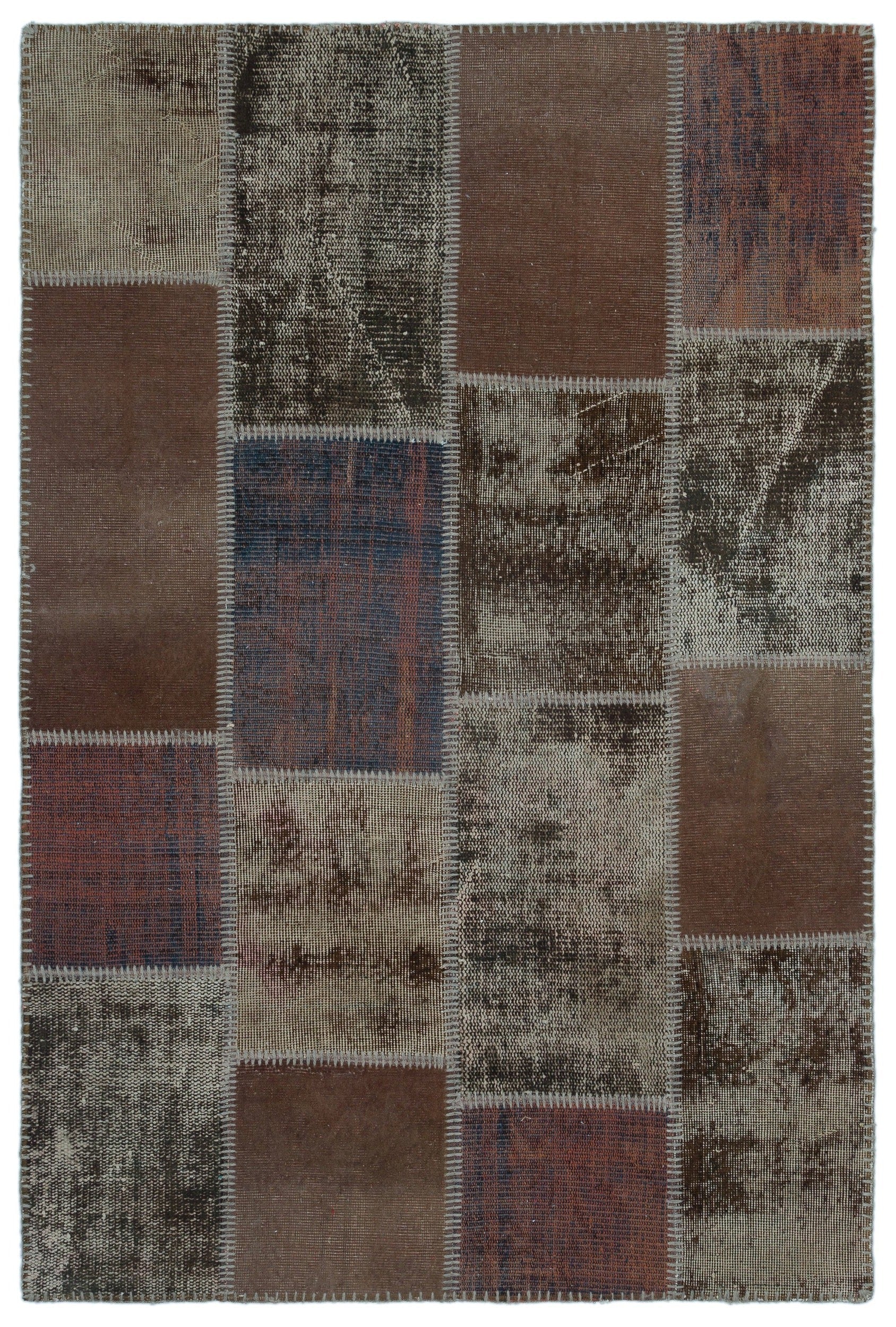 Iskece 22337 Brown Patchwork Wool Handmade Area Rug 3'11" x 5'11"