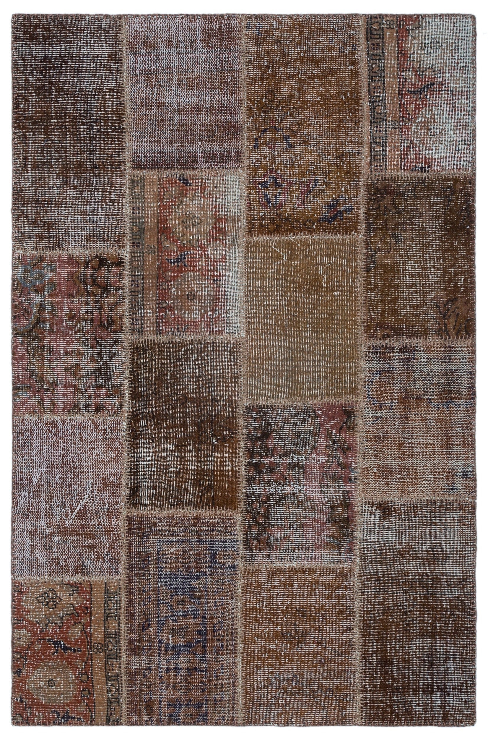 Iskece 25096 Brown Patchwork Wool Handmade Area Rug 3'11" x 5'11"