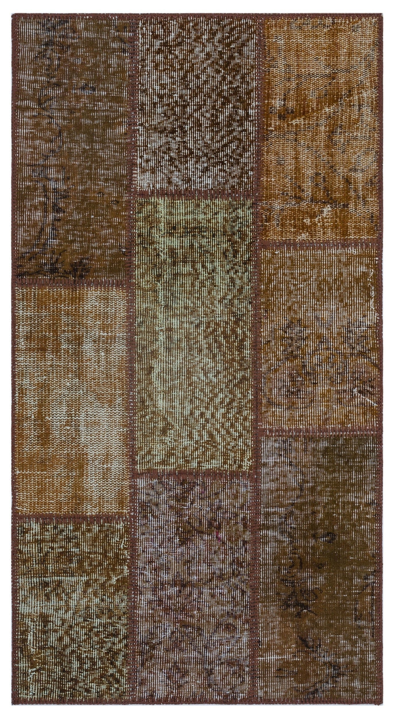 Iskece 26108 Brown Patchwork Wool Handmade Area Rug 2'7" x 4'11"