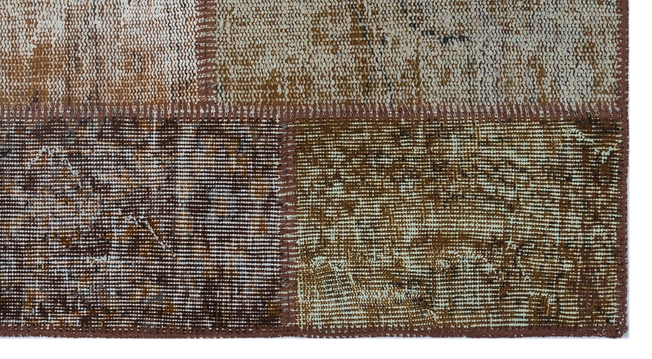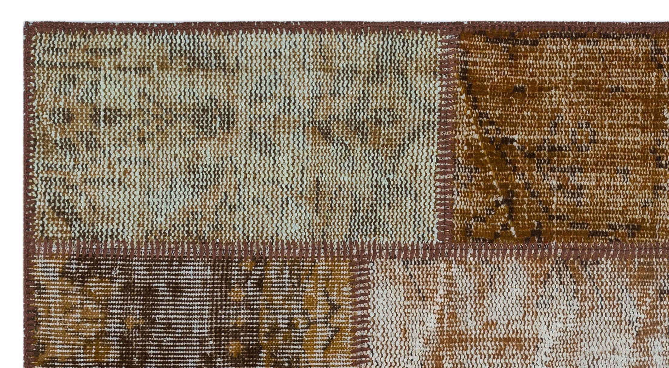 Iskece 26137 Brown Patchwork Wool Handmade Area Rug 2'7" x 4'11"