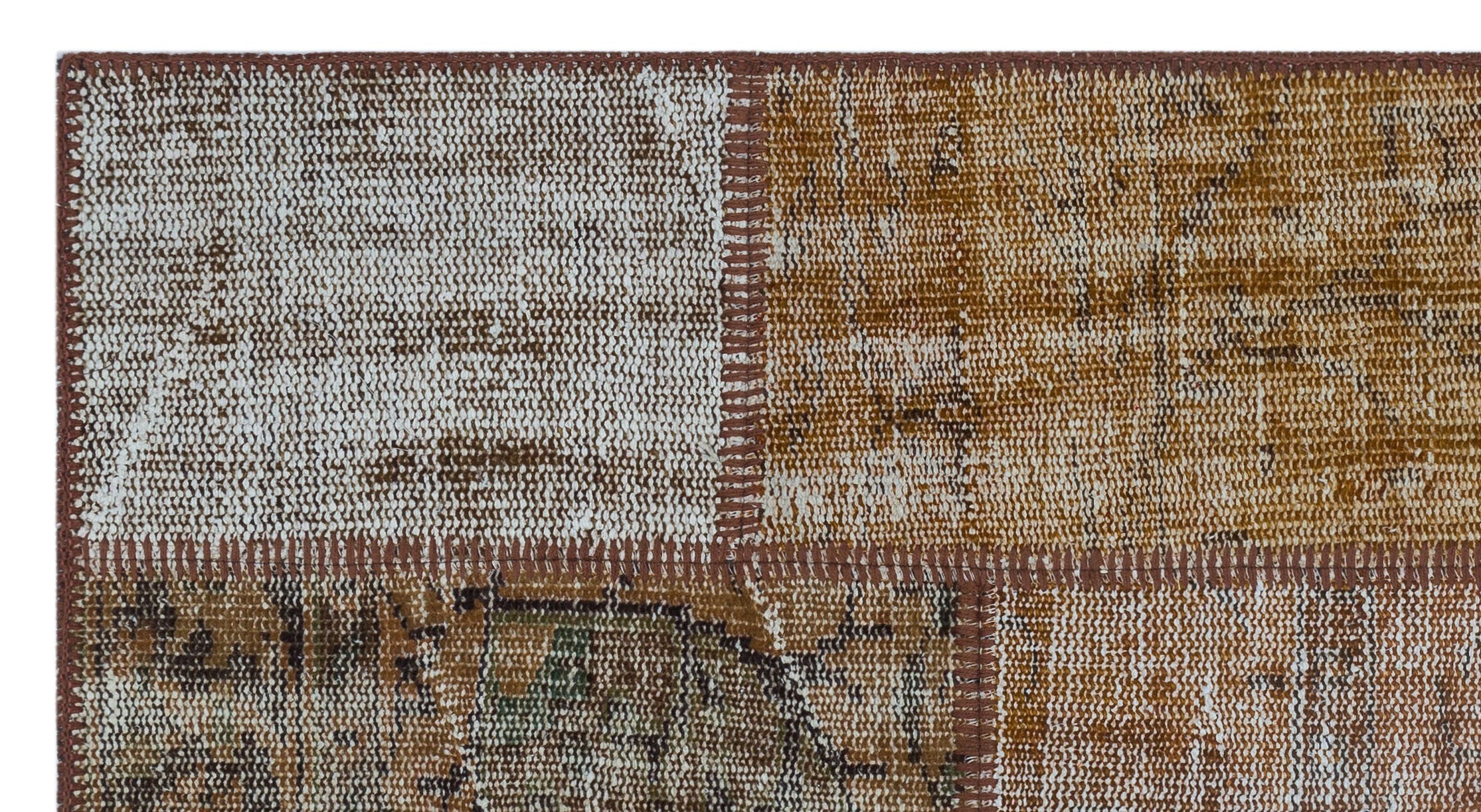 Iskece 26149 Brown Patchwork Wool Handmade Area Rug 2'7" x 4'11"