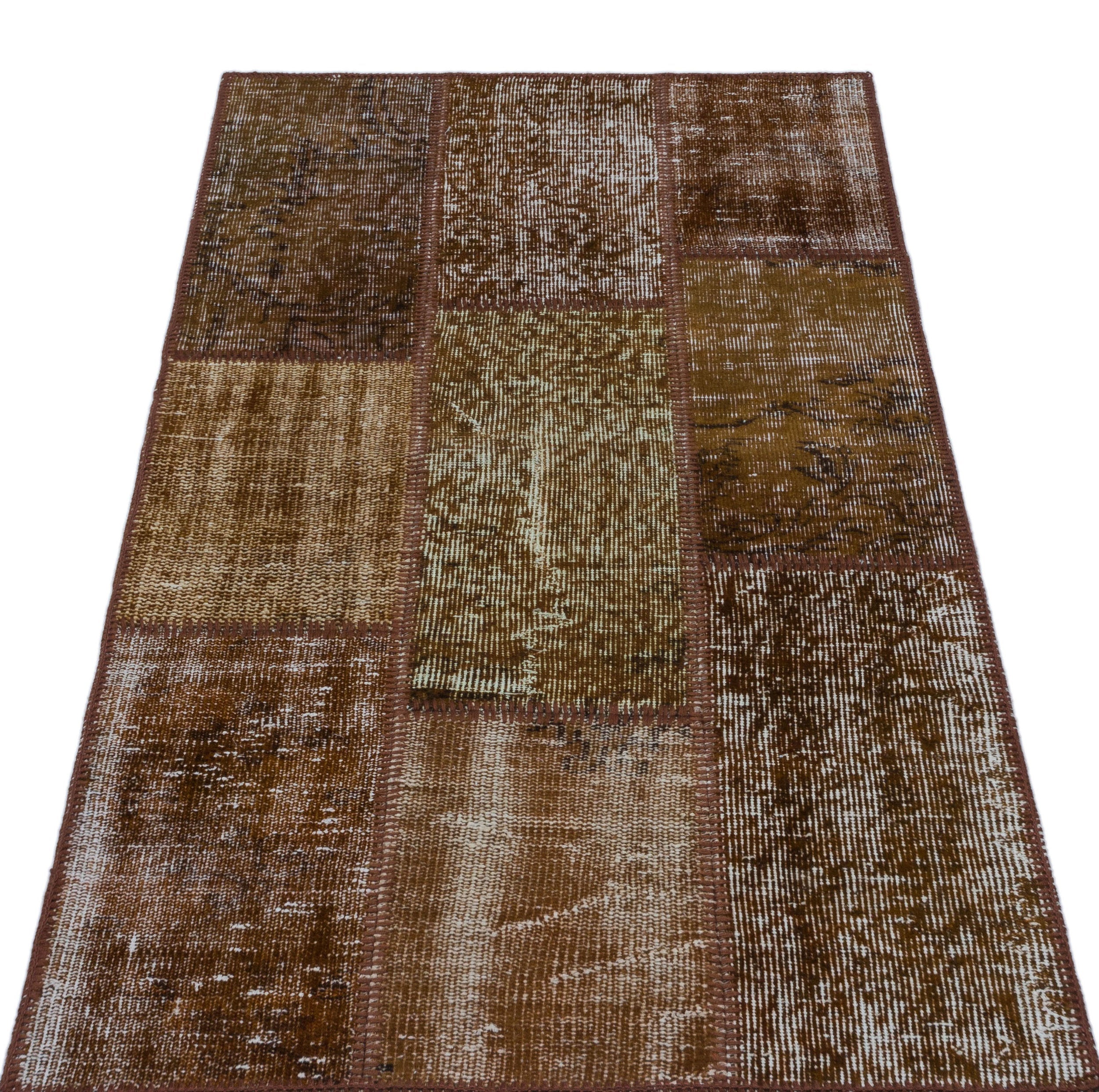 Iskece 26223 Brown Patchwork Wool Handmade Area Rug 2'7" x 4'11"