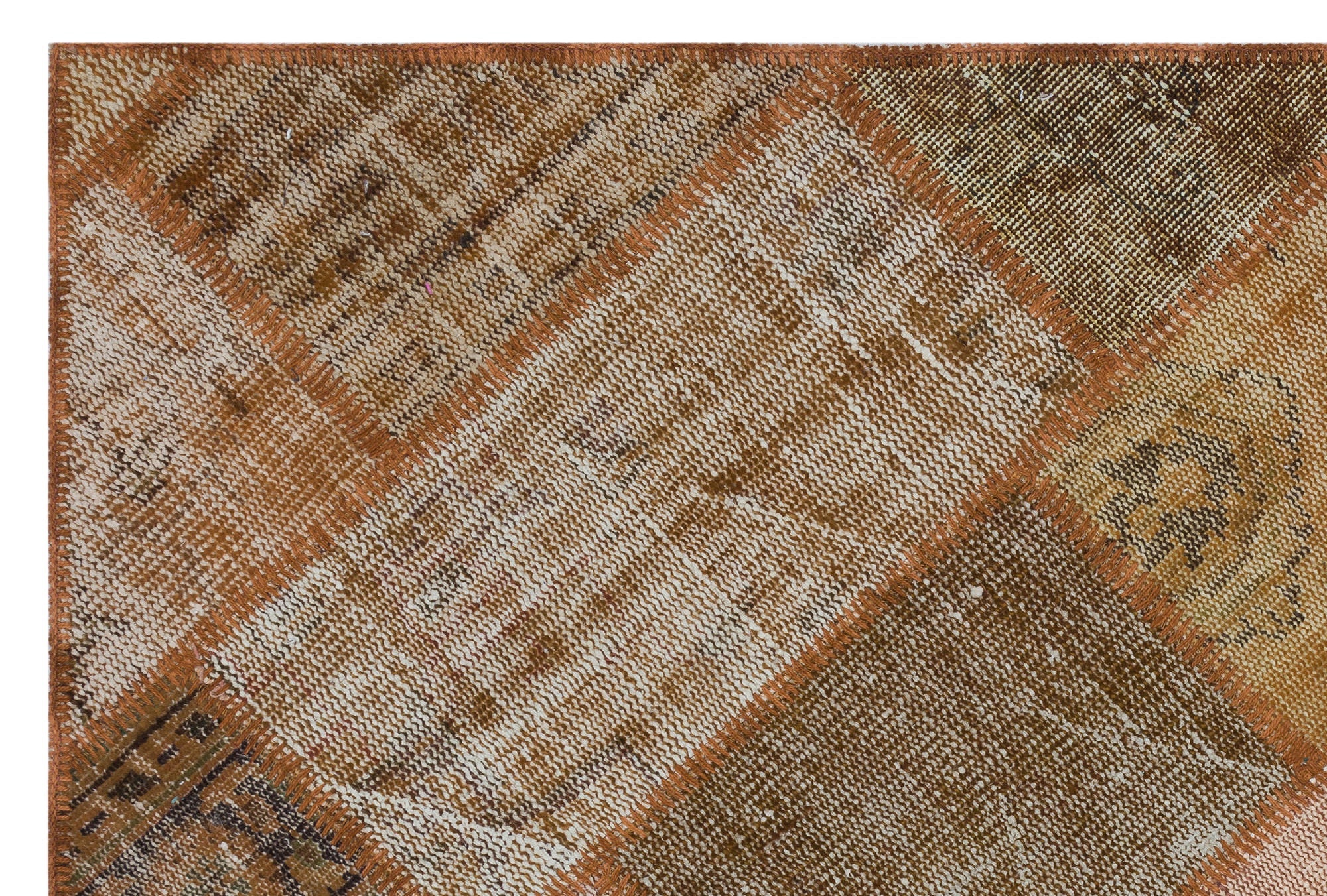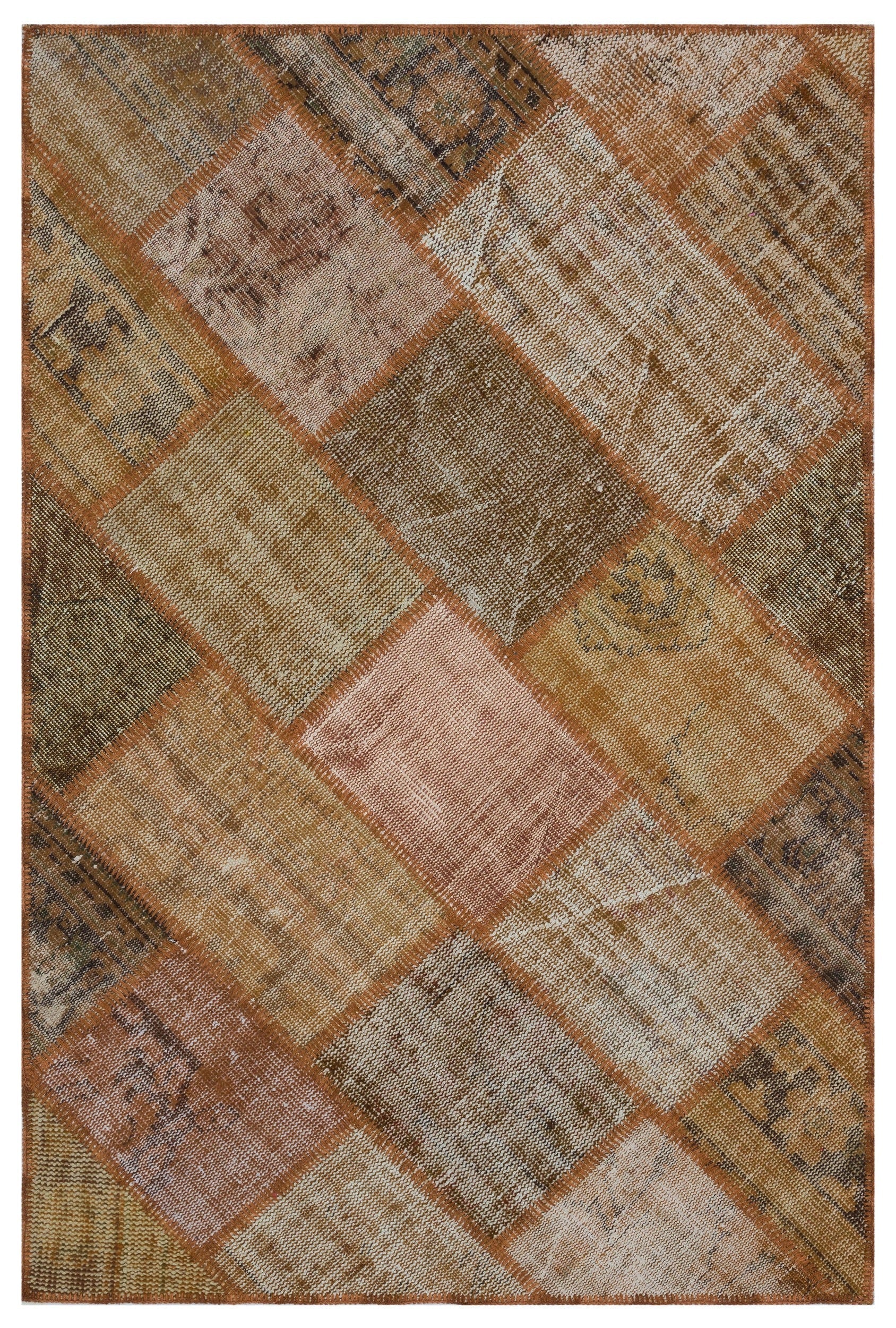Iskece 31113 Brown Patchwork Wool Handmade Area Rug 3'11" x 5'11"