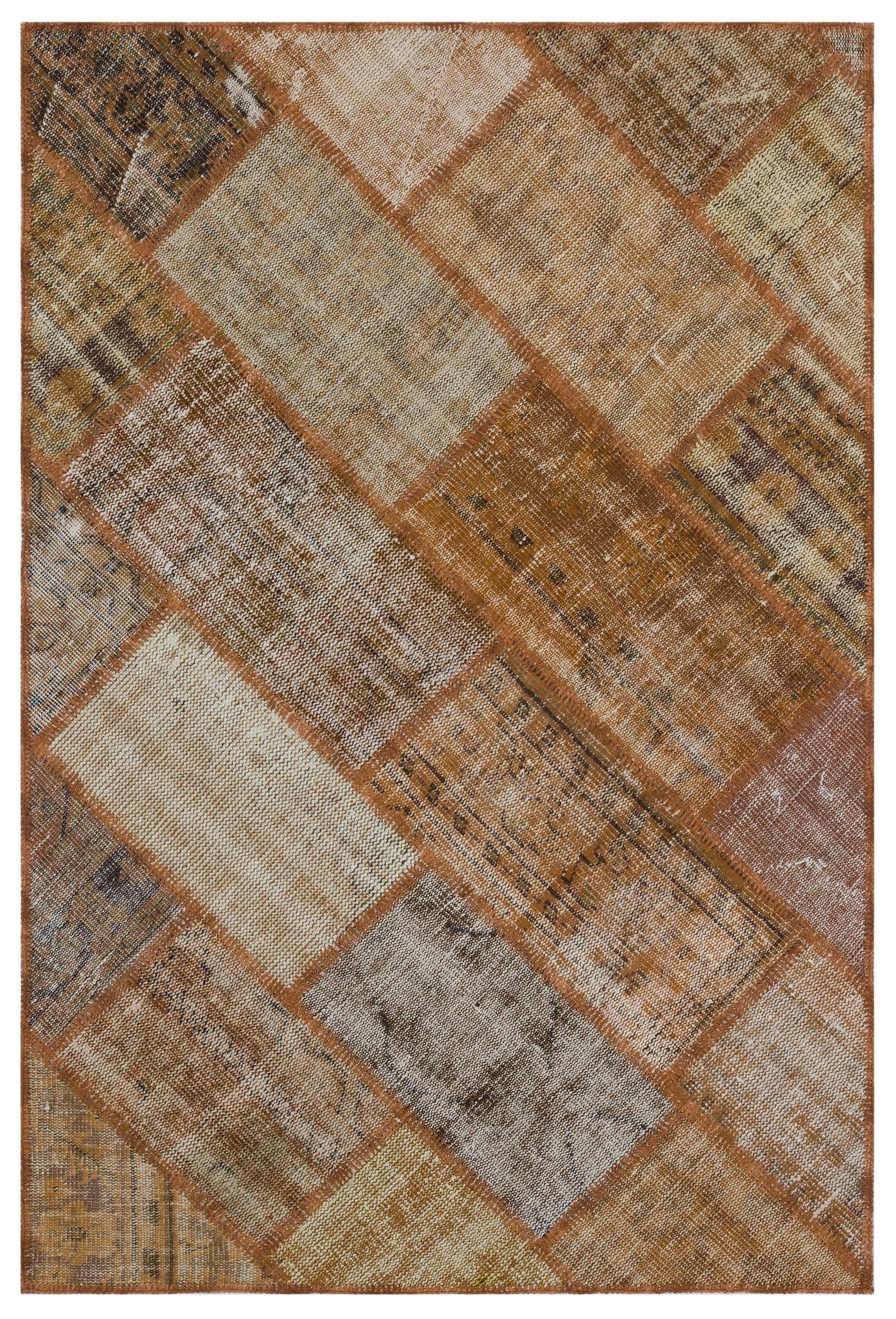 Iskece 31141 Brown Patchwork Wool Handmade Area Rug 3'11" x 5'11"