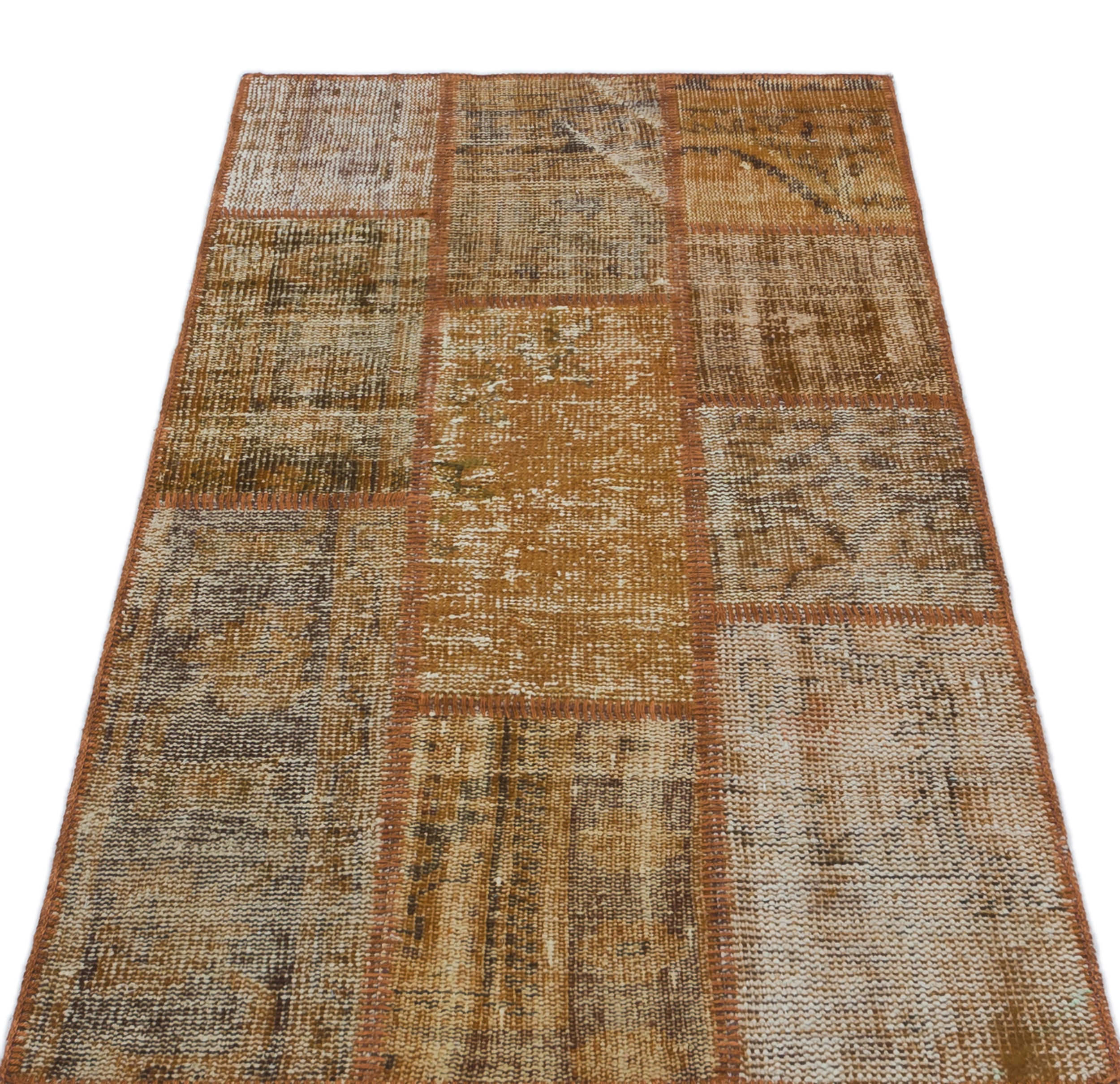 Iskece 31348 Brown Patchwork Wool Handmade Area Rug 2'7" x 4'11"