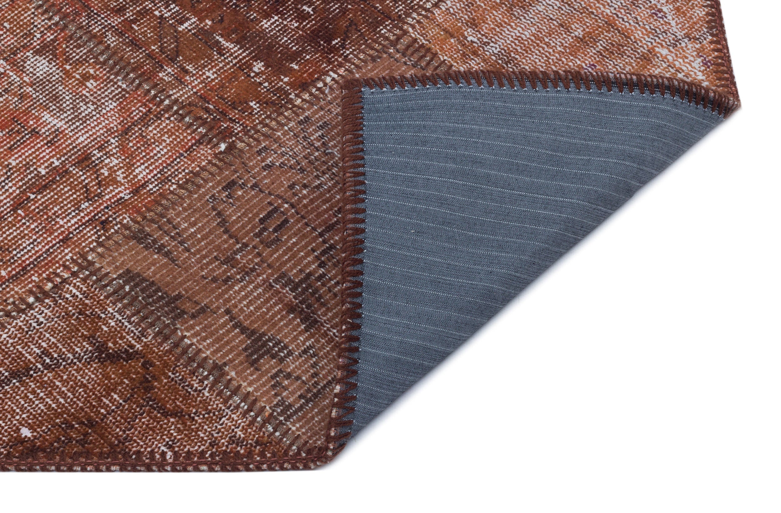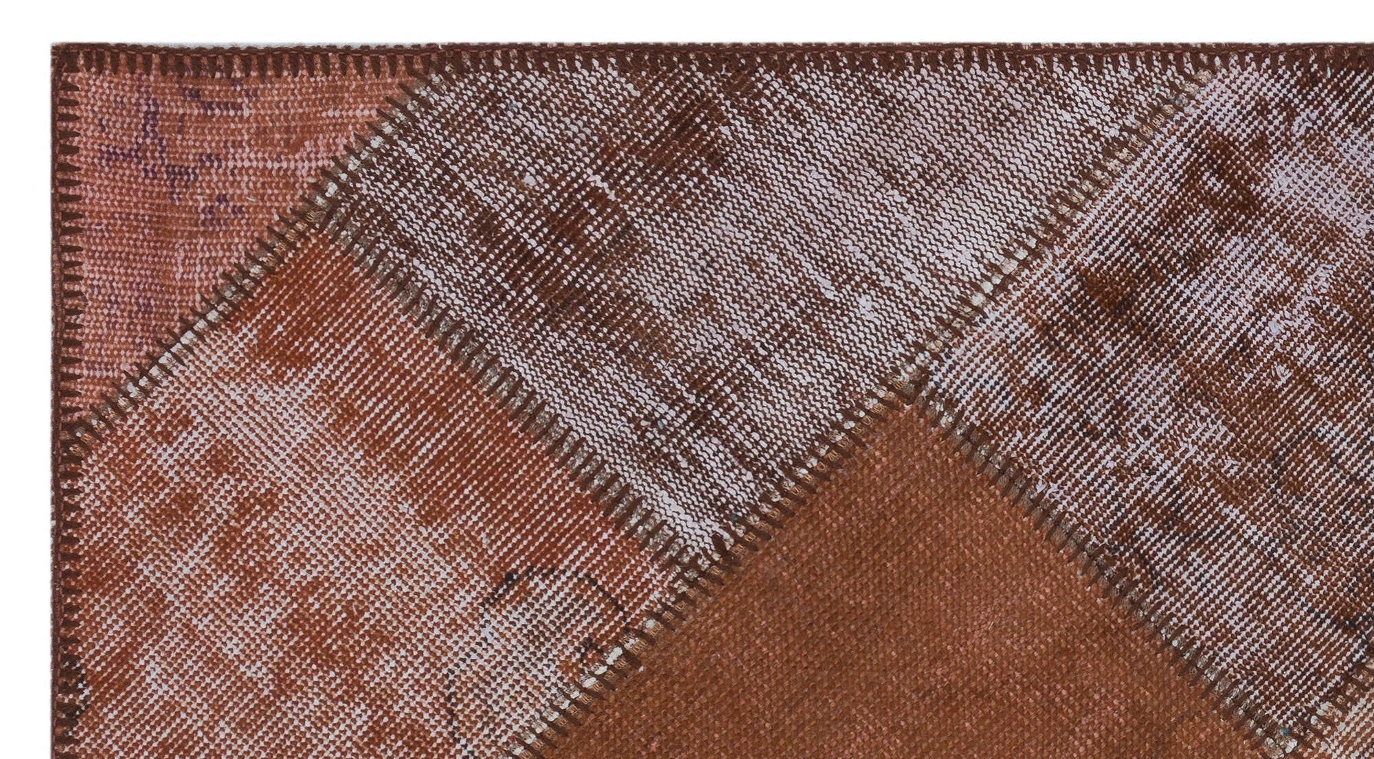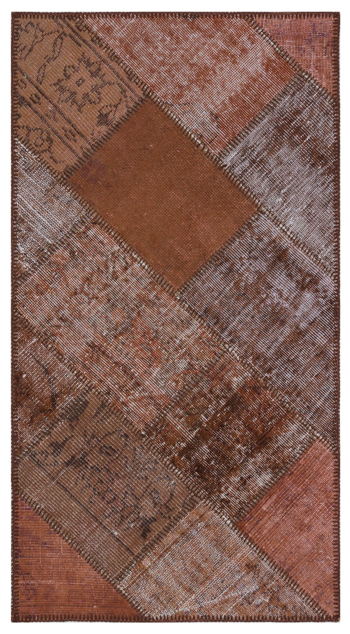 Iskece 31398 Brown Patchwork Wool Handmade Area Rug 2'7" x 4'11"