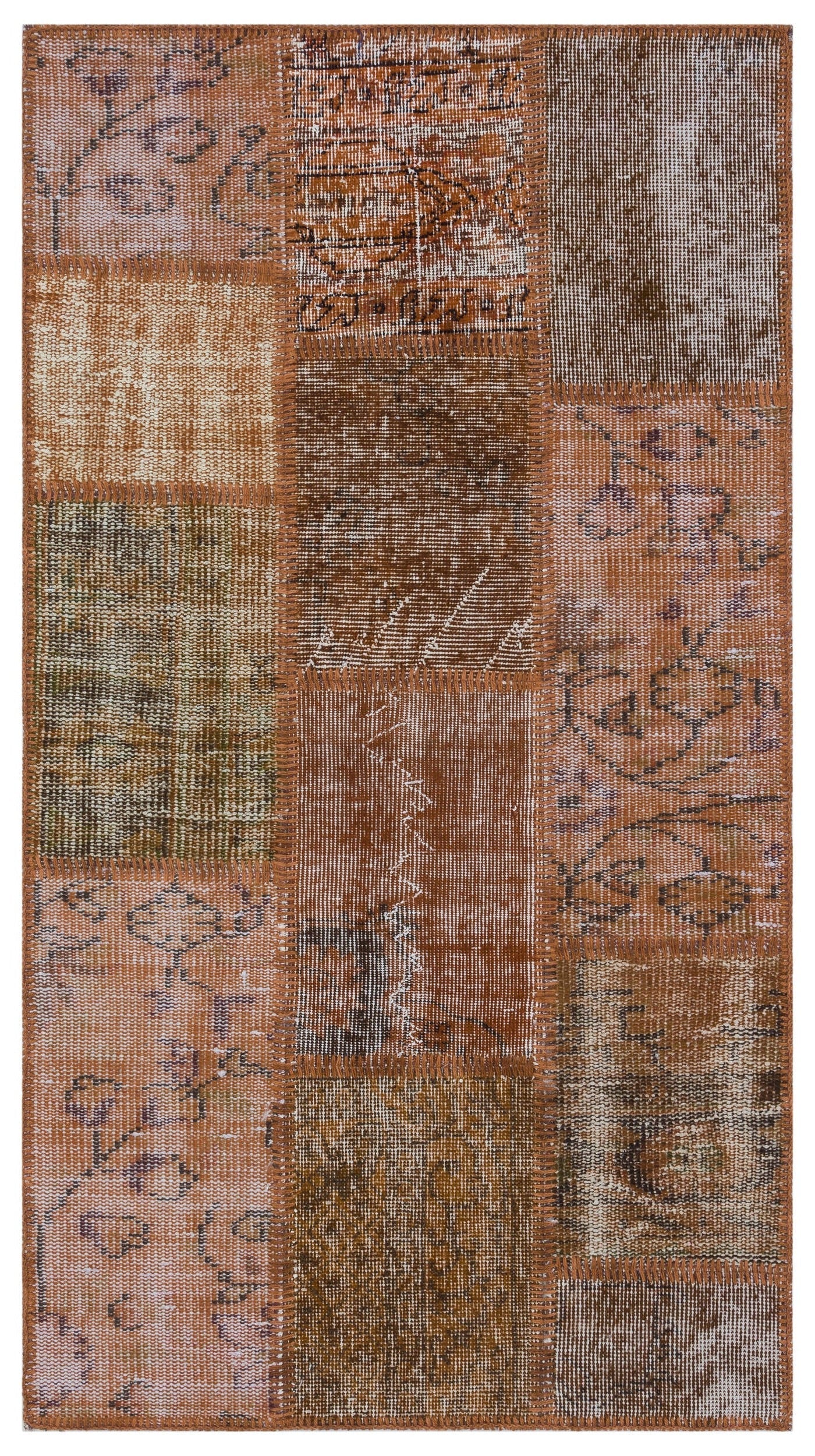 Iskece 31426 Brown Patchwork Wool Handmade Area Rug 2'7" x 4'11"