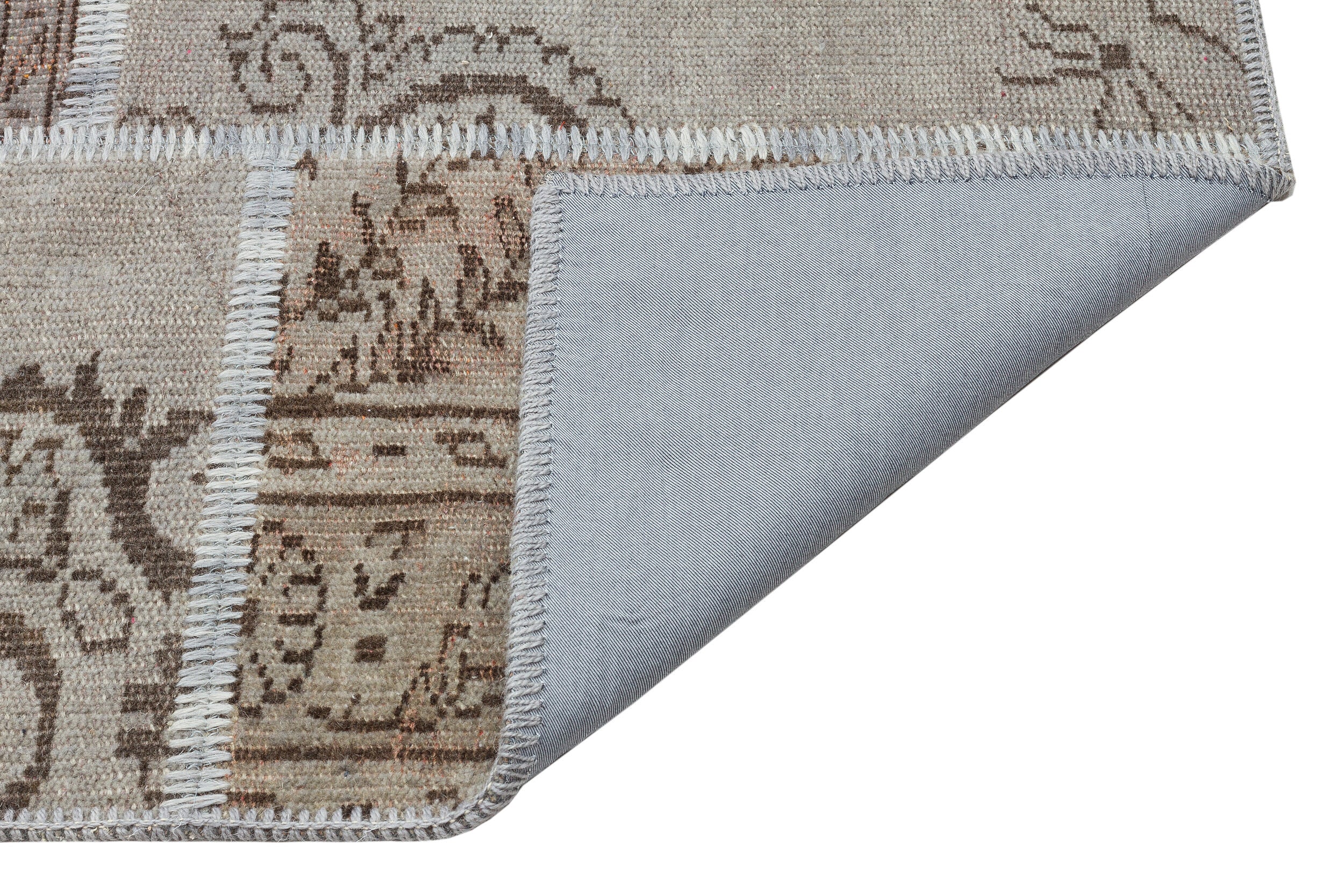 Iskece 35879 Brown Patchwork Wool Handmade Area Rug 5'3" x 7'7"
