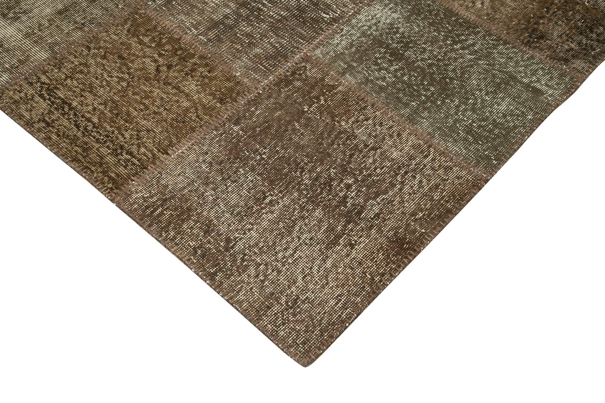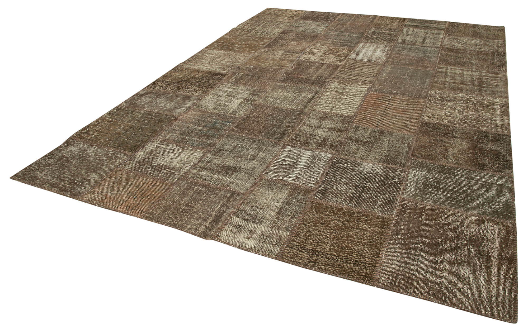 Handmade Area Rug - Brown Patchwork Turkish Wool Cotton Carpet 8'4''x11'6''