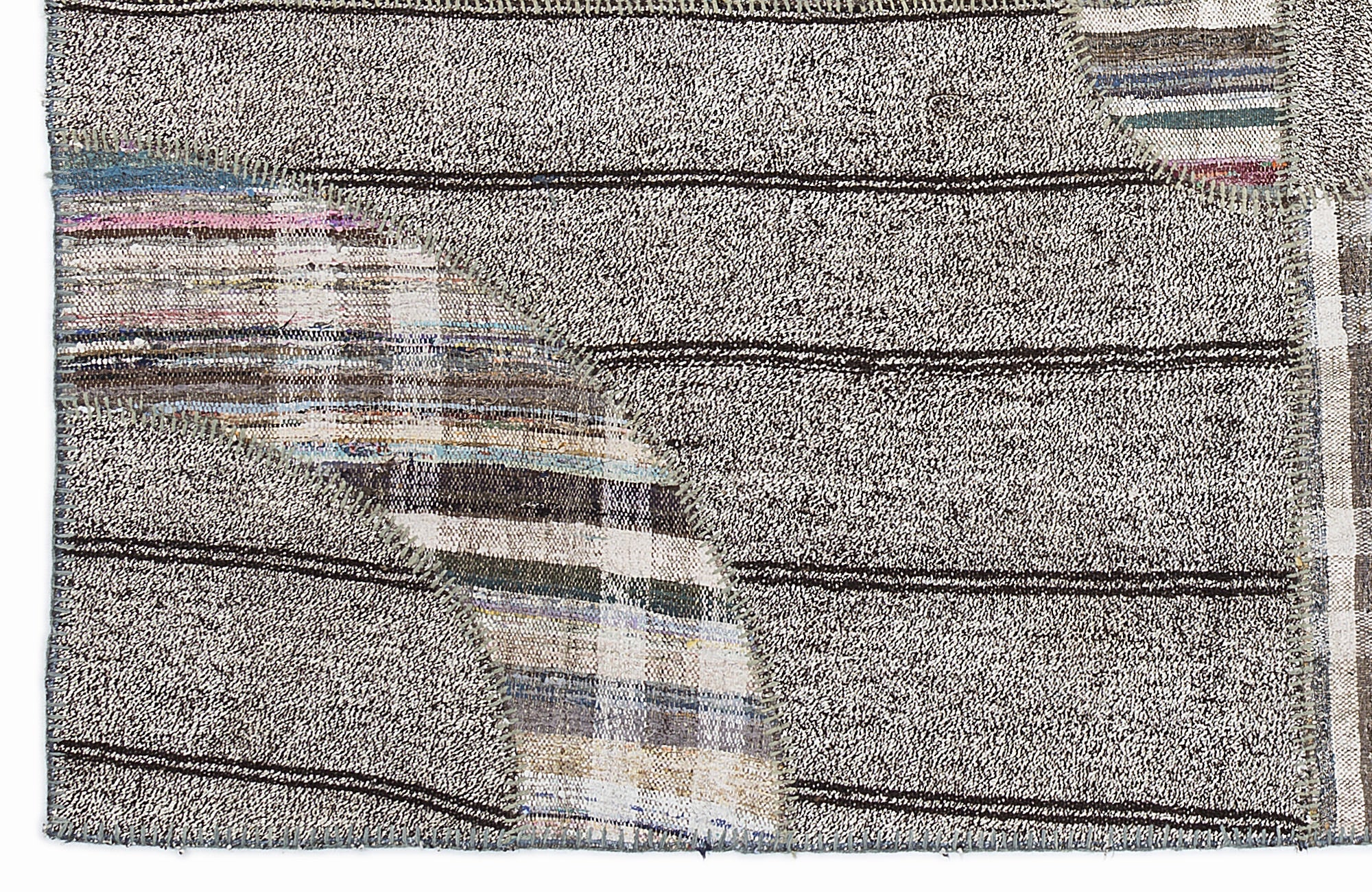 Teselya 1073 Brown Striped Wool Handmade Area Rug 5'3" x 7'7"