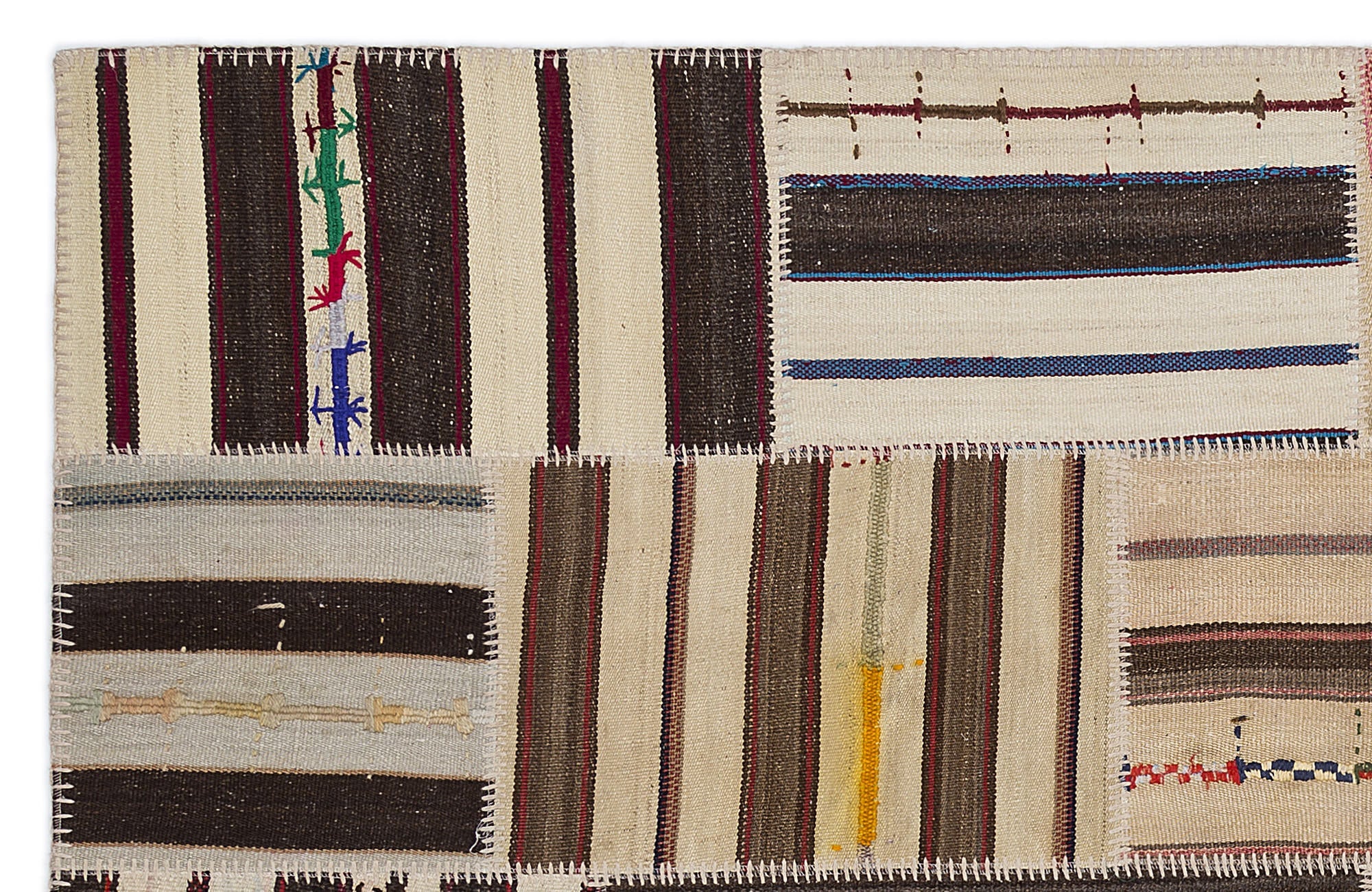 Teselya 2211 Brown Striped Wool Handmade Area Rug 5'3" x 7'7"