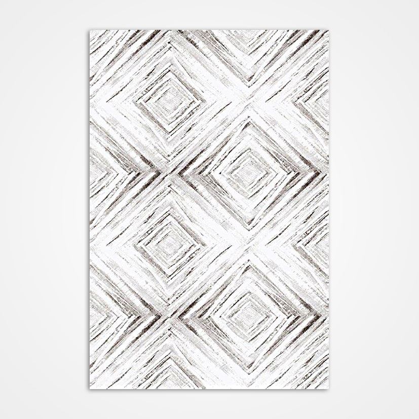 Grey Geometric Area Rug - Machine Made Polyester Rug with Laser Cut Edges