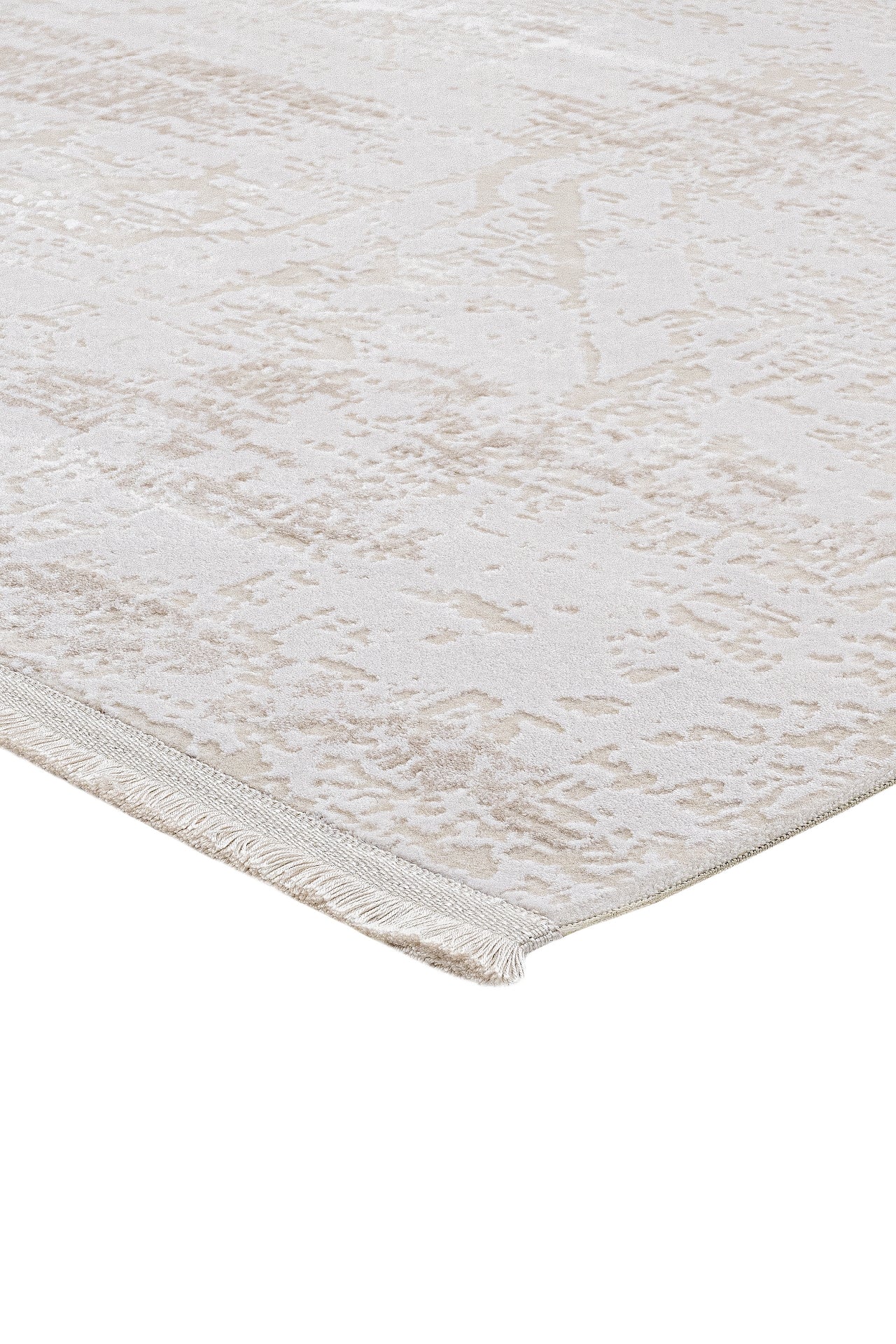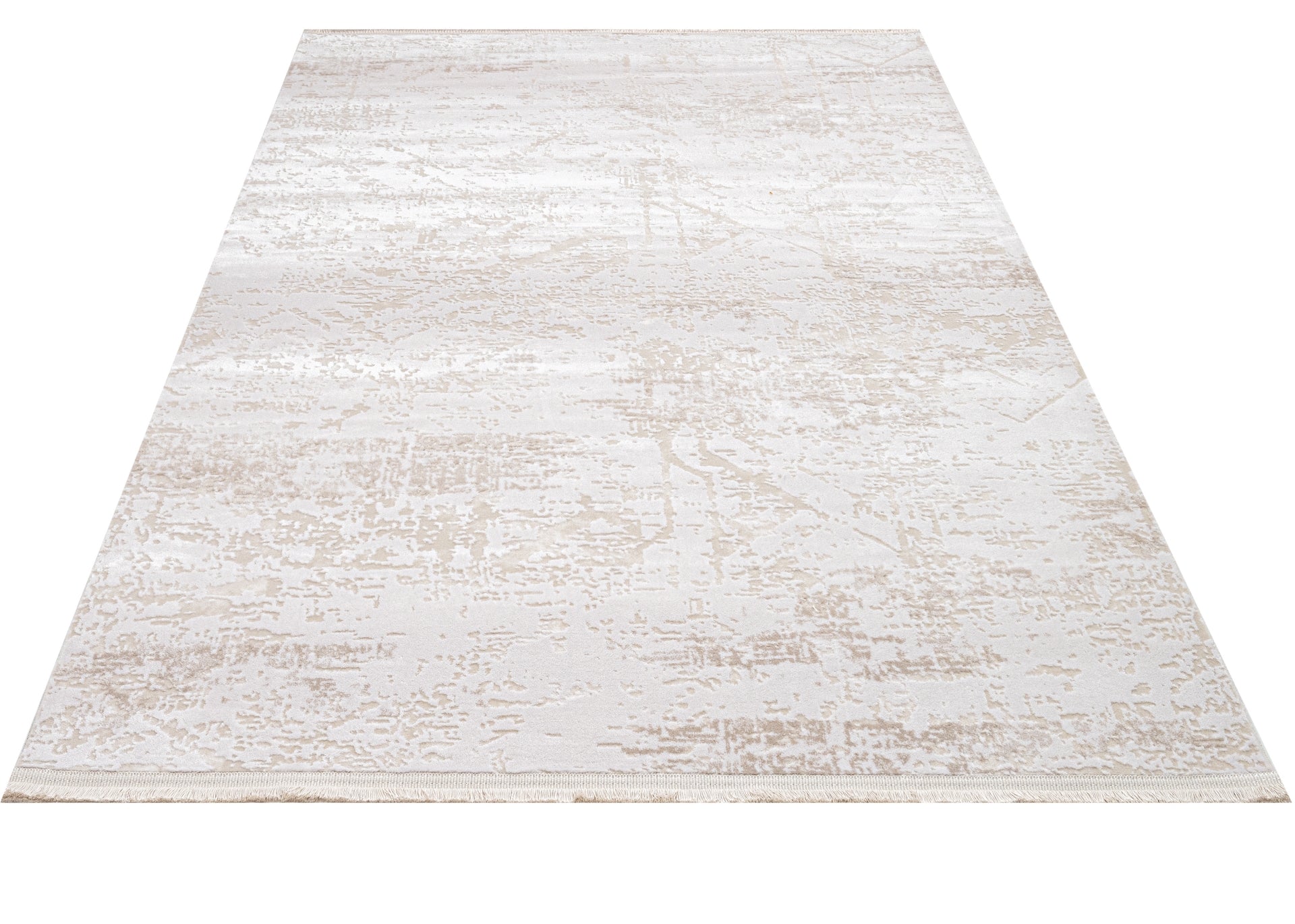 Modern Area Rug - Beige Machine Made Rug with Soft Pile & Laser Cut Edges
