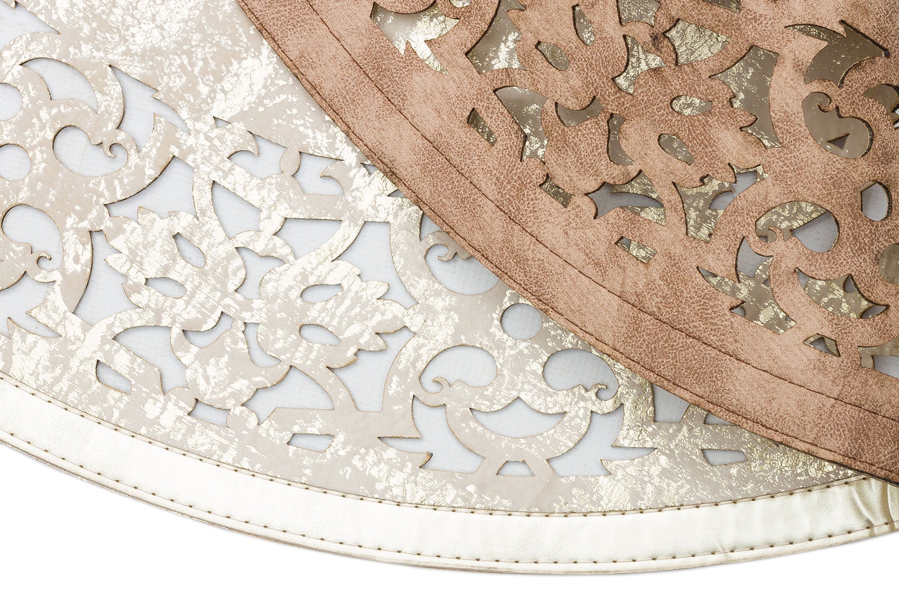 The Modern Carved Leather Carpet from Eko is a stunning decorative floor covering designed to enhance any living space with its blend of classical design rug elements and modern style carpet features. This shiny bordered carpet combines a beige gold color palette with intricate modern embroidery rug patterns, offering a unique round carved carpet that serves as both a functional and elegant centerpiece. Crafted from durable synthetic materials, this artificial leather rug delivers long-lasting beauty while providing an easy clean carpet surface ideal for busy households.