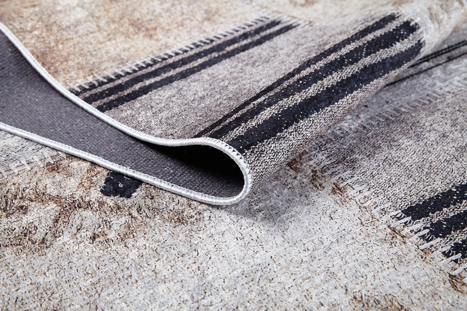 Cream Patchwork Rug - Non Slip Digital Print Area Rug for Living Room & Kitchen