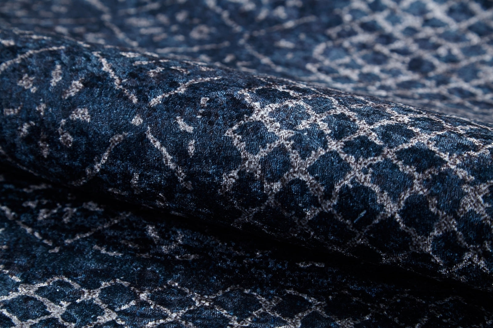 - Stylish floor covering with a navy blue frame design carpet pattern