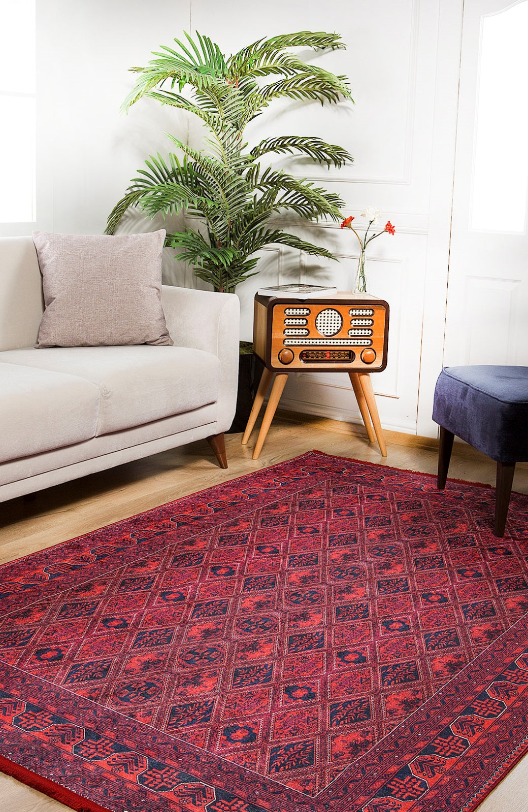 - Digital print rug with vibrant red area carpet design for timeless elegance