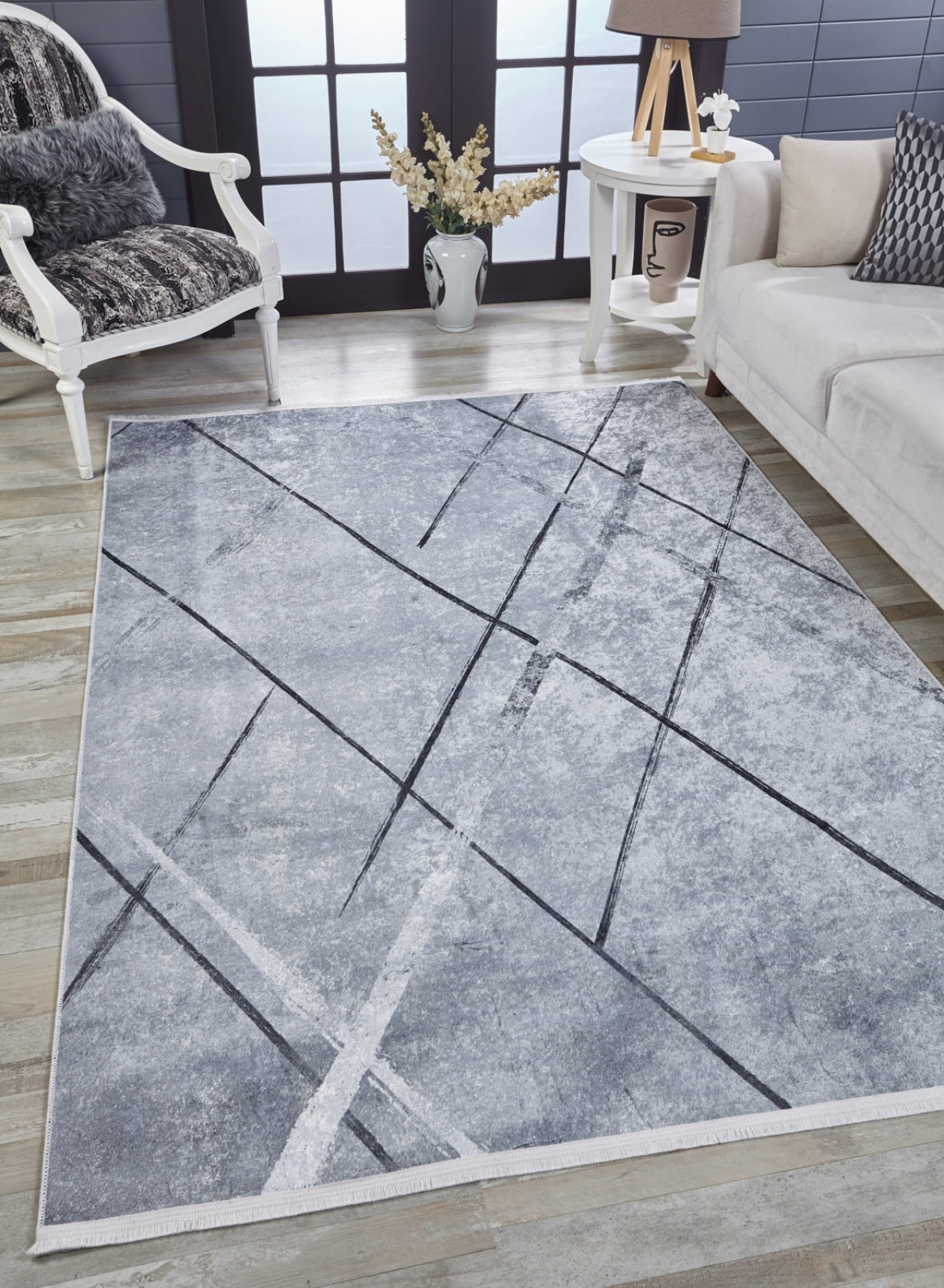 The grey striped area rug is a stylish and practical addition to any home, designed to enhance your living space while providing comfort and safety. This digital print carpet features a non slip surface that keeps it securely in place, making it ideal for busy areas like hallways and living rooms. Its antibacterial and antiallergic properties ensure a healthier environment by reducing dust and allergens, perfect for families and allergy sufferers. Crafted with high-quality materials, this dust free carpet does not produce lint or dust, maintaining cleanliness effortlessly. Tested for durability, it comes with a satisfaction guarantee from Halınet.
