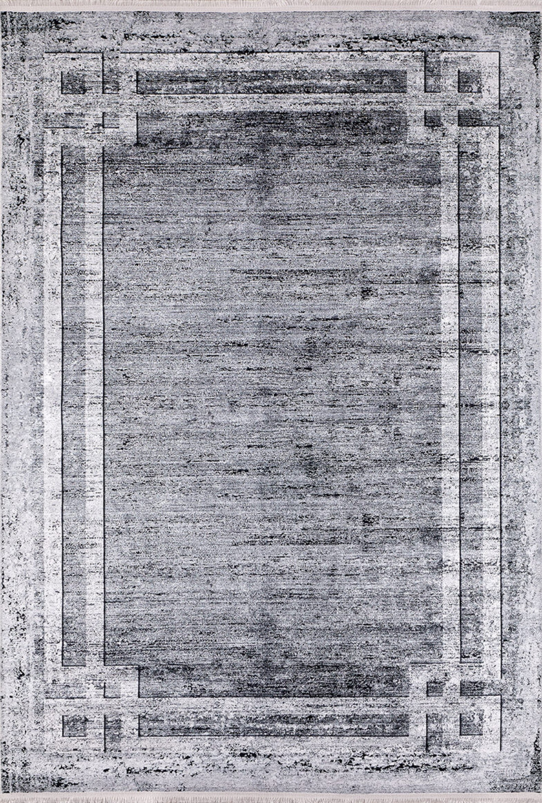 Digital Print Area Rug - Grey Frame Non Slip Antibacterial Carpet for Living Room