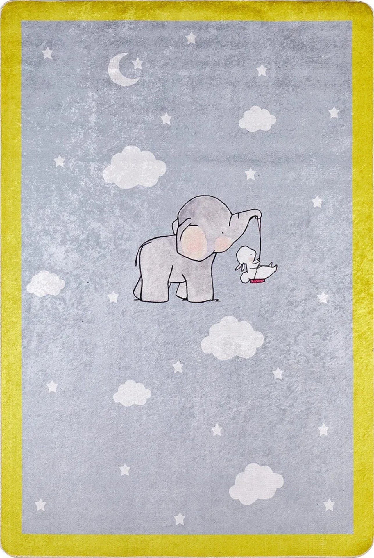 Kids Digital Print Rug – Grey Figured Children's Area Rug, Non Slip & Antibacterial