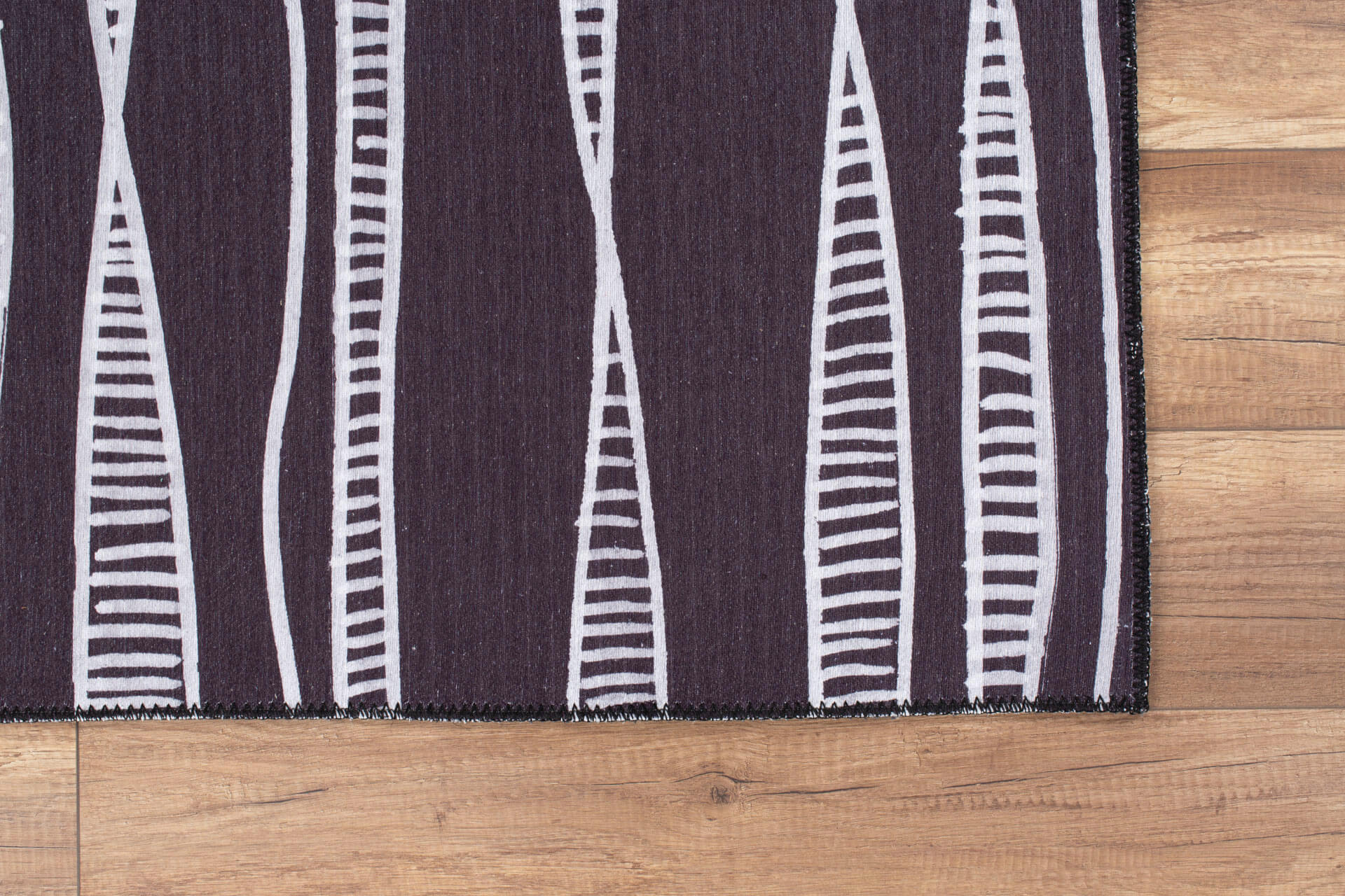 Digital Print Area Rug - Washable Non Slip Anthracite Striped Cotton Rug