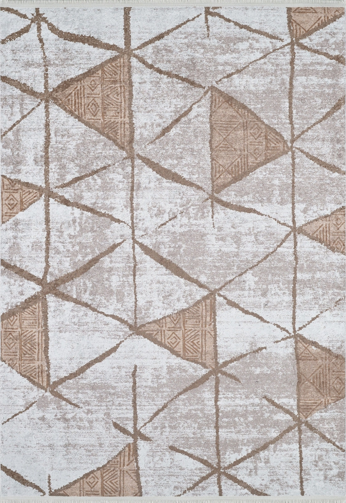 Beige Geometric Area Rug – Digital Print Non Slip Washable Carpet for Living Room