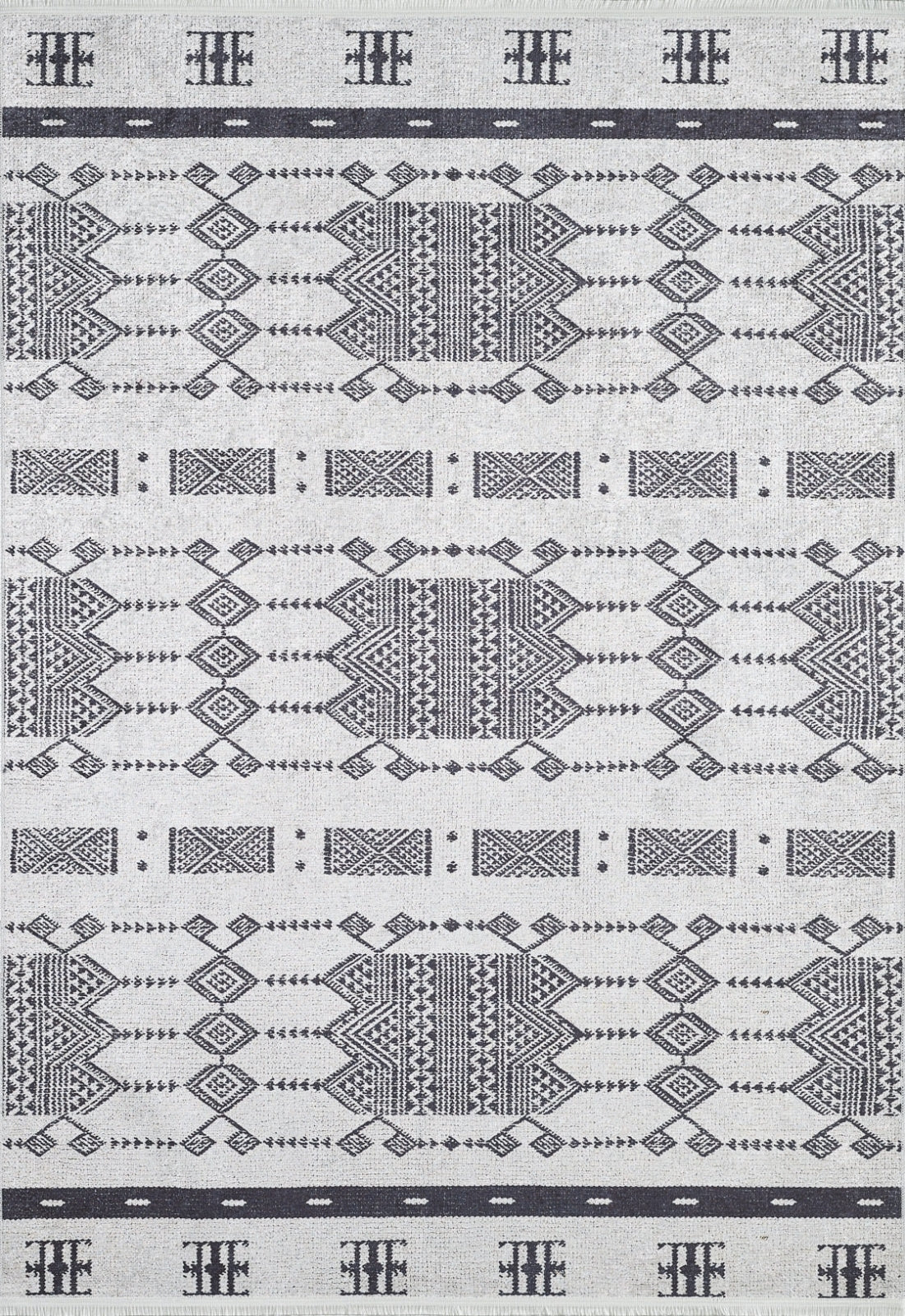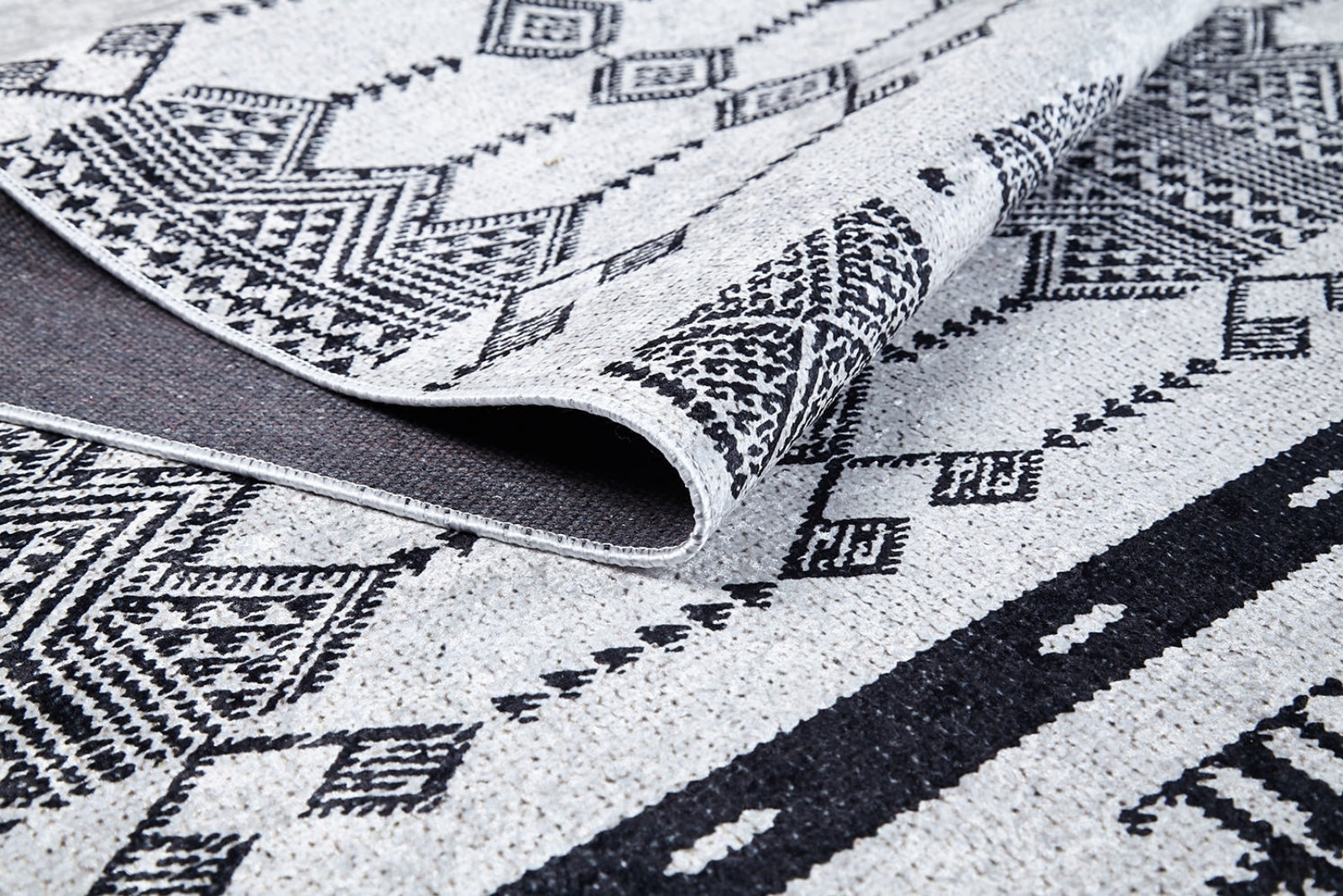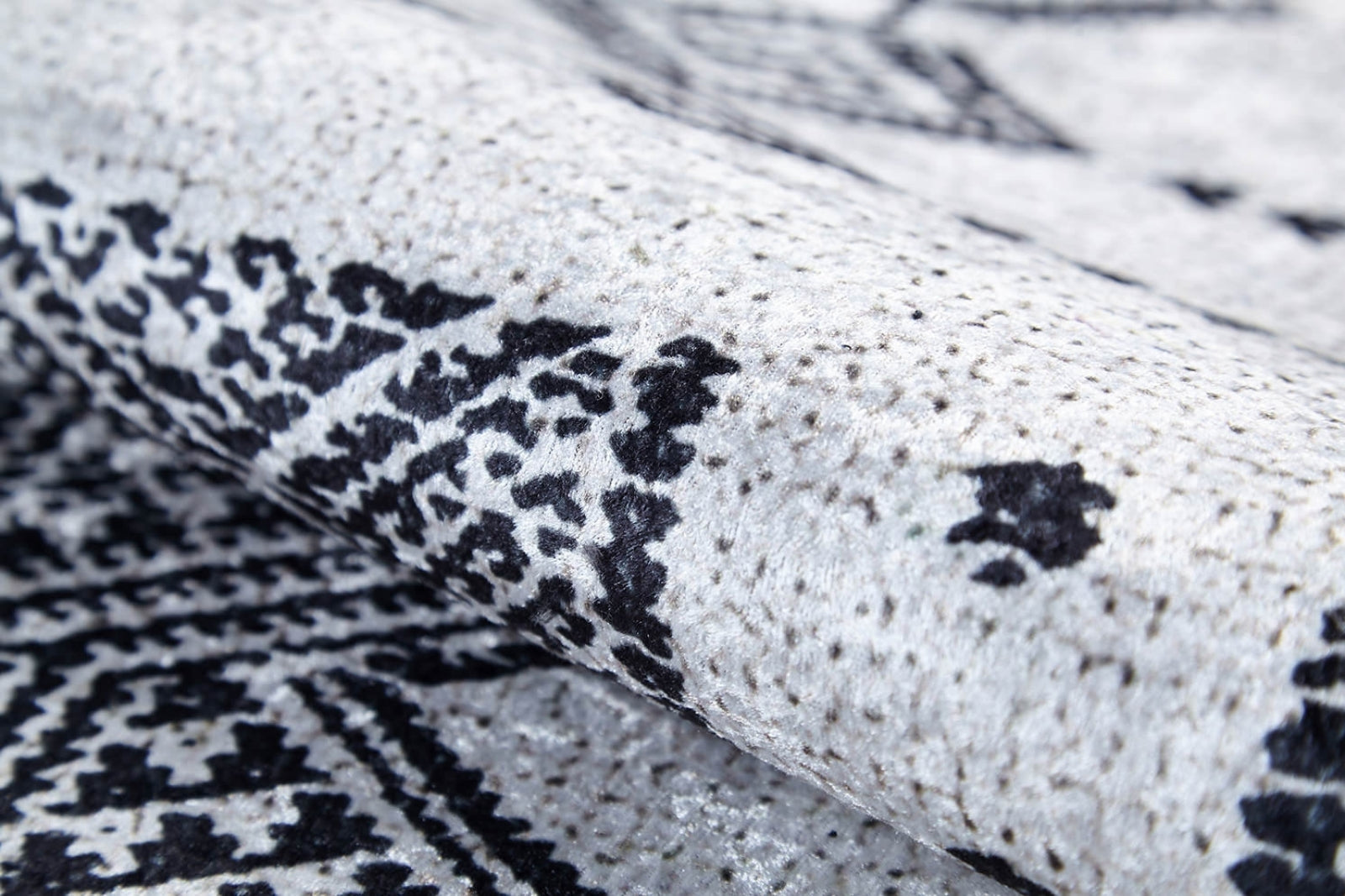 Grey Geometric Area Rug - Digital Print Rug with Non Slip, Antibacterial Design