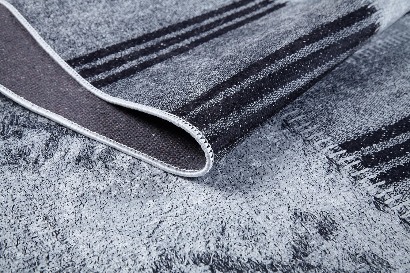 Grey Patchwork Area Rug - Digital Print Non Slip Washable Carpet for Living Room
