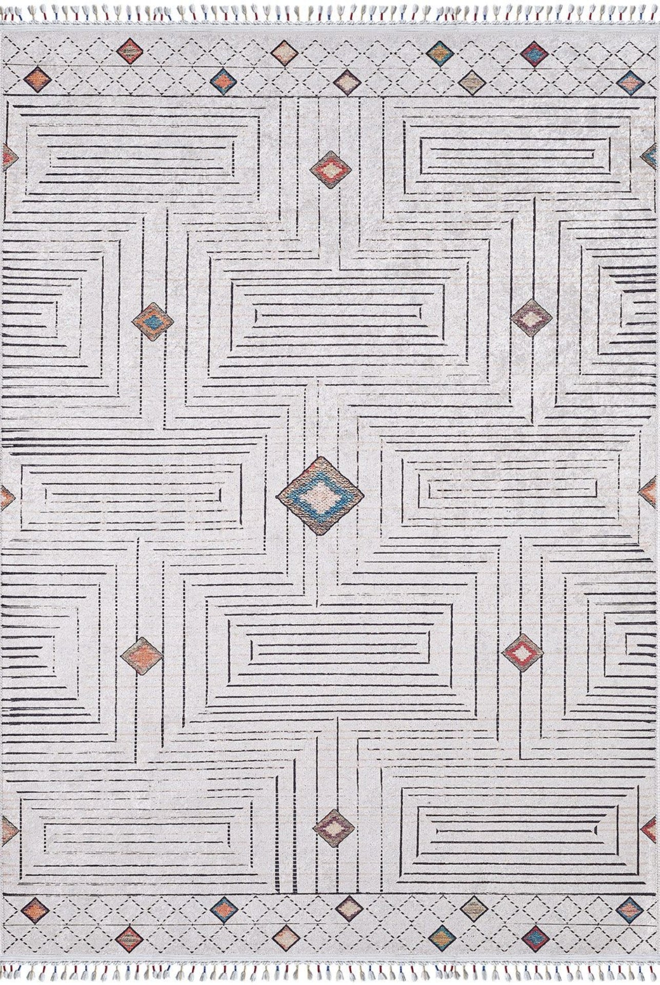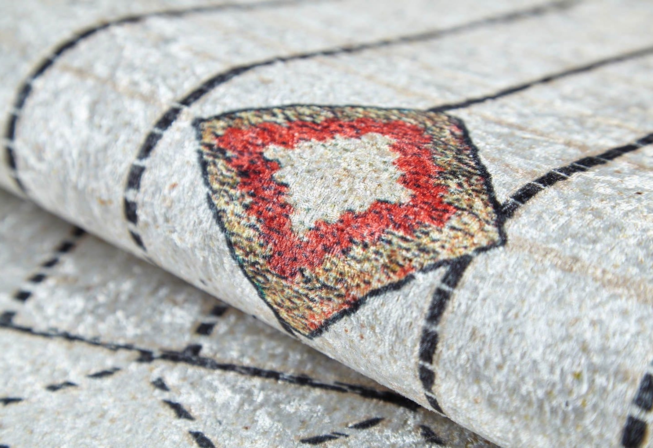 Beige Geometric Area Rug – Digital Print Non Slip Washable Floor Carpet