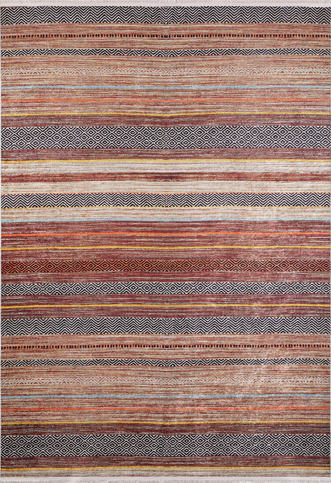 The brown striped area rug from Halınet is a modern striped carpet designed to enhance your living space with both style and function. This digital print rug features a soft texture carpet that is allergy friendly and antibacterial carpet treated to keep your home healthy. Ideal as a living room rug or hallway carpet, this washable area rug offers a non slip rug backing for safety and a dust free rug surface that prevents lint and allergens. With precise digital pattern rug printing, each striped floor covering brings vibrant colors and sharp details that last.