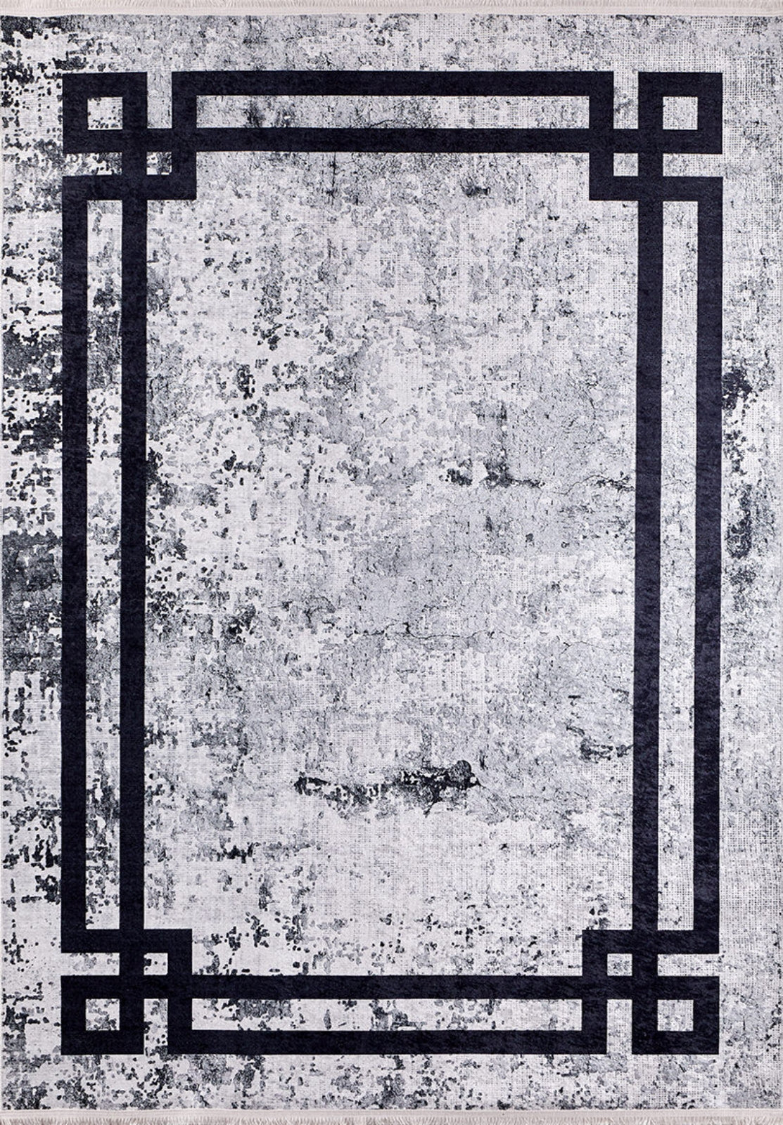 Grey Digital Print Rug - Modern Frame Design Area Rug | Non Slip, Washable