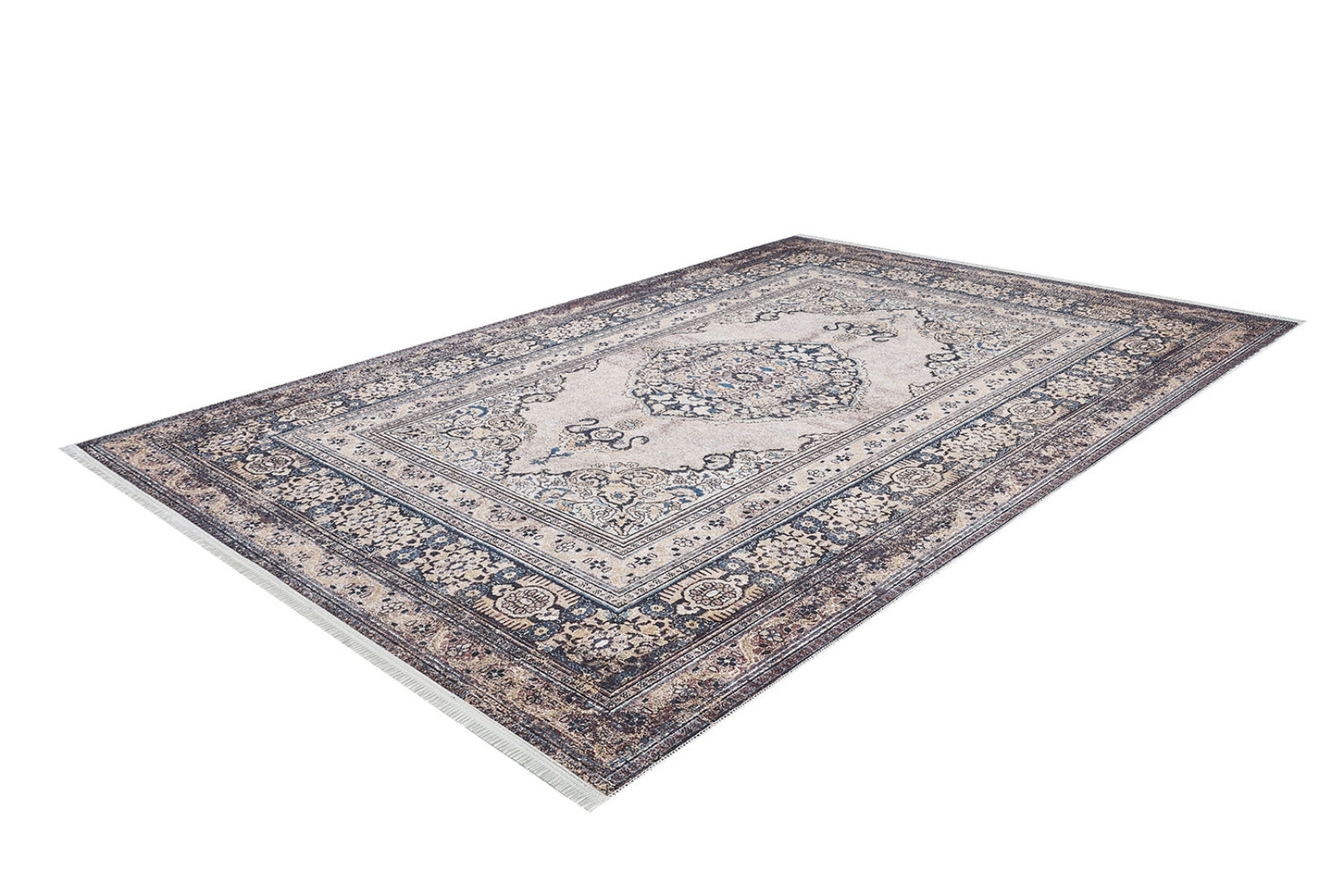 Digital Print Area Rug – Classic Beige Frame Non Slip Carpet for Living Room
