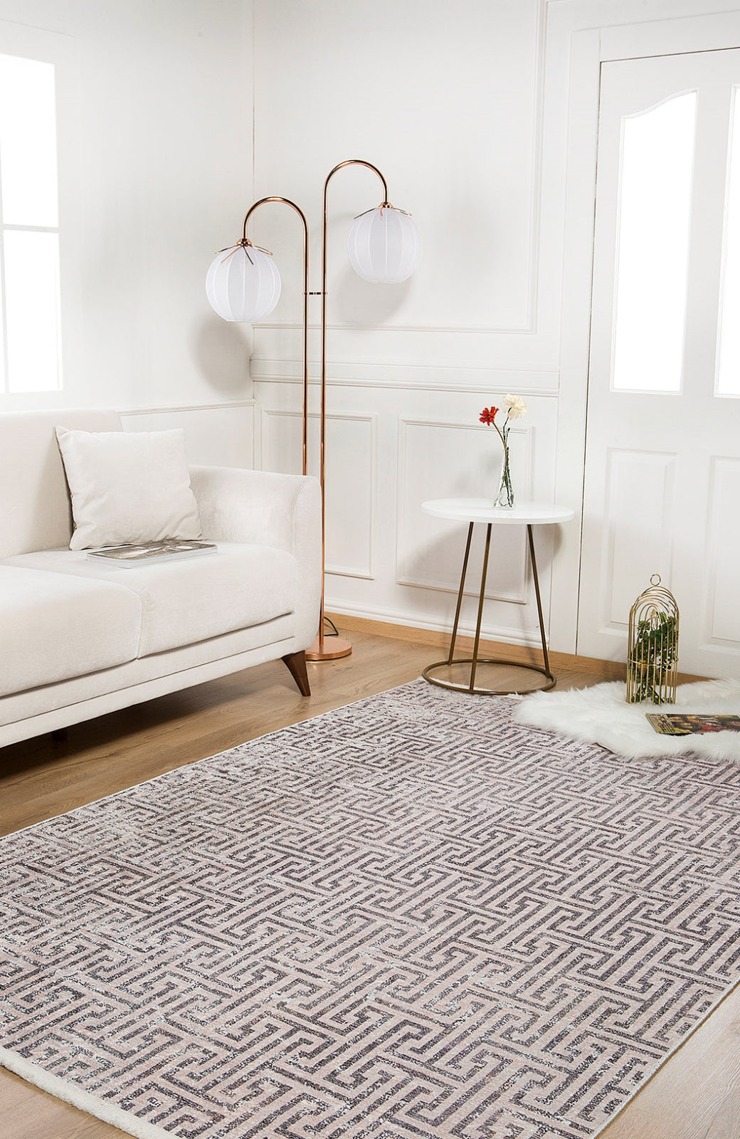 Crafted by Halınet, this beige geometric area rug combines functionality with aesthetic appeal. The antibacterial properties have been tested to meet rigorous hygiene standards, ensuring a safe environment for your family. Its non slip carpet feature has undergone safety testing to provide reliable floor grip. Easy to clean and maintain, this area carpet resists fading and wear even in high traffic areas.