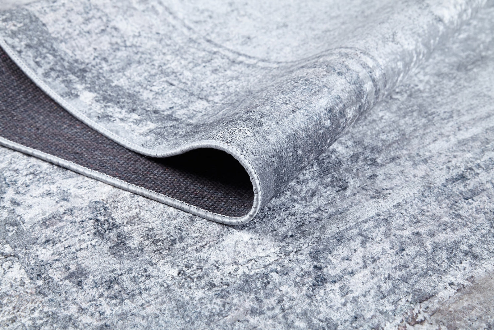 Experience the perfect combination of comfort, safety, and style with this antibacterial and antiallergic grey frame area rug. Its non slip feature ensures peace of mind in busy households, while the washable fabric simplifies maintenance. Elevate your home's atmosphere with this modern home rug that truly delivers on both form and function.