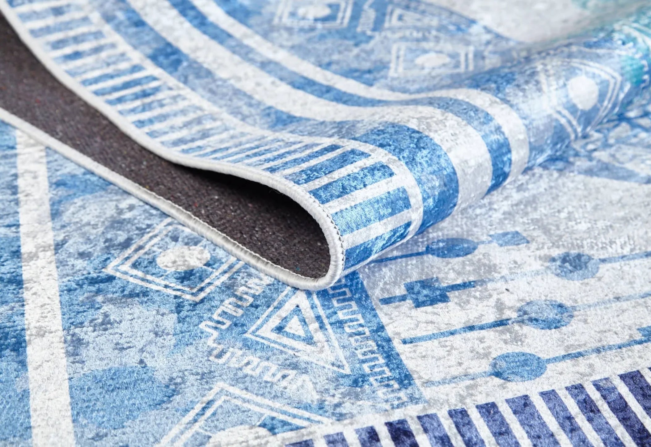 The Blue Area Rug from Halınet is a stylish home rug designed to enhance any living room carpet with its modern floor covering appeal. This Kamiensk digital print rug combines vibrant patterns and durable materials to offer a patterned floor mat that is both functional and decorative. Featuring an antibacterial carpet surface, this non slip rug ensures safety and hygiene, making it ideal for families and pet owners alike.
