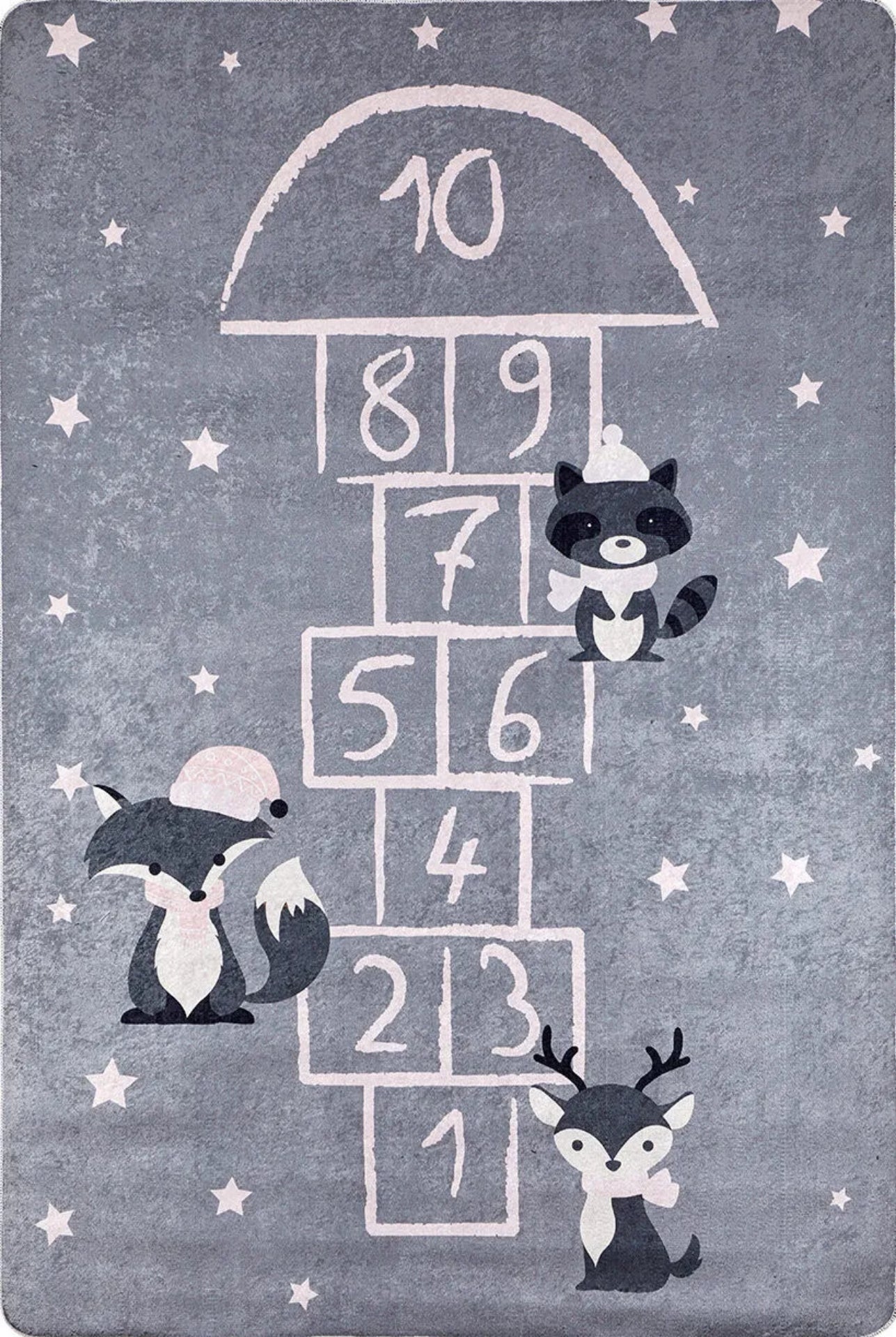 - Grey kids carpet with figured pattern carpet design that fits seamlessly into any children's area rug setup