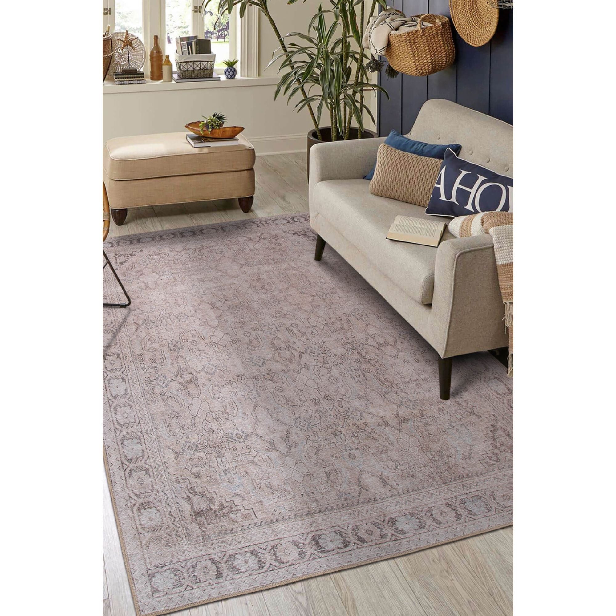 Beige Ethnic Area Rug - Washable Non Slip Cotton Microfiber Soft Carpet