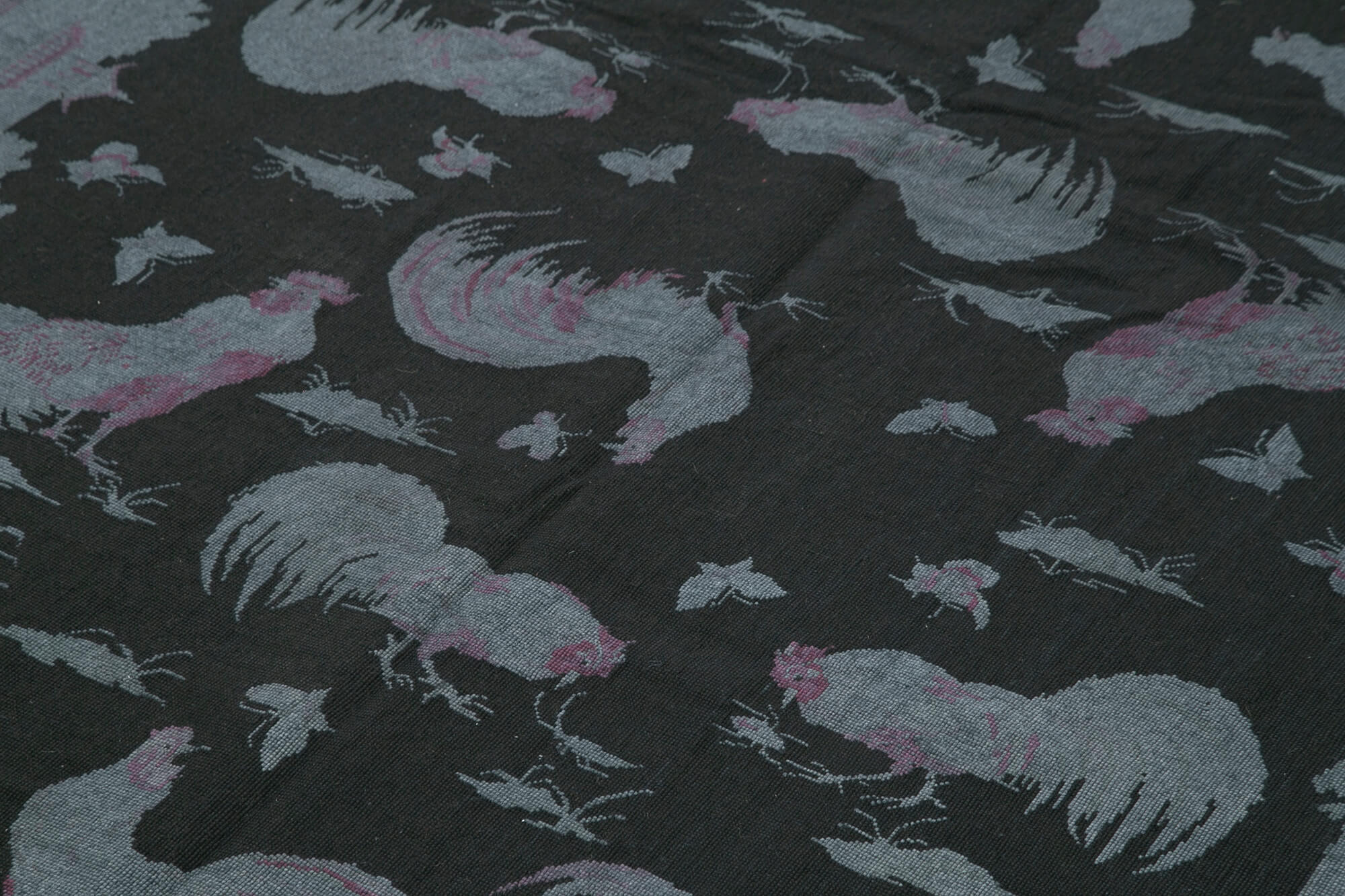 Needlepoint Grey Figured Cotton Wool Handmade Area Rug 5'0'' x 8'2''
